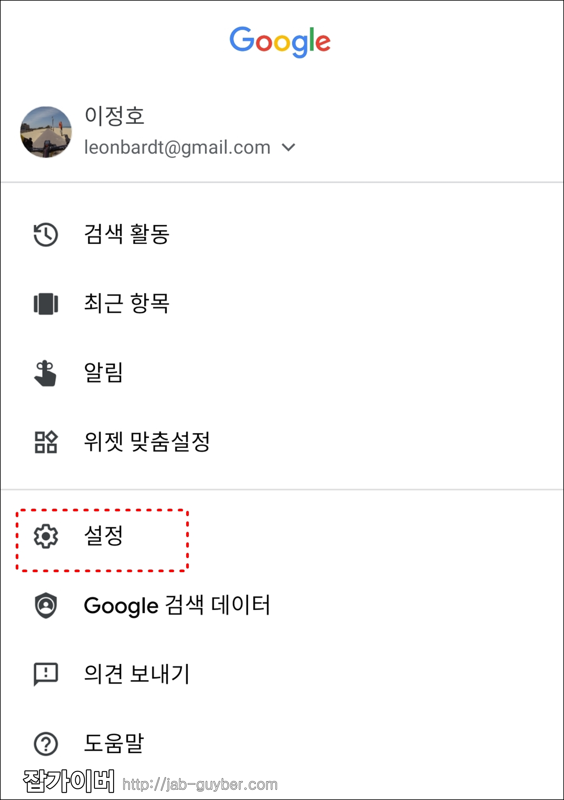 홈 화면이나 앱 서랍에서 Google 앱을 실행한 뒤, 프로필 아이콘이나 설정 메뉴로 들어가시면 됩니다.