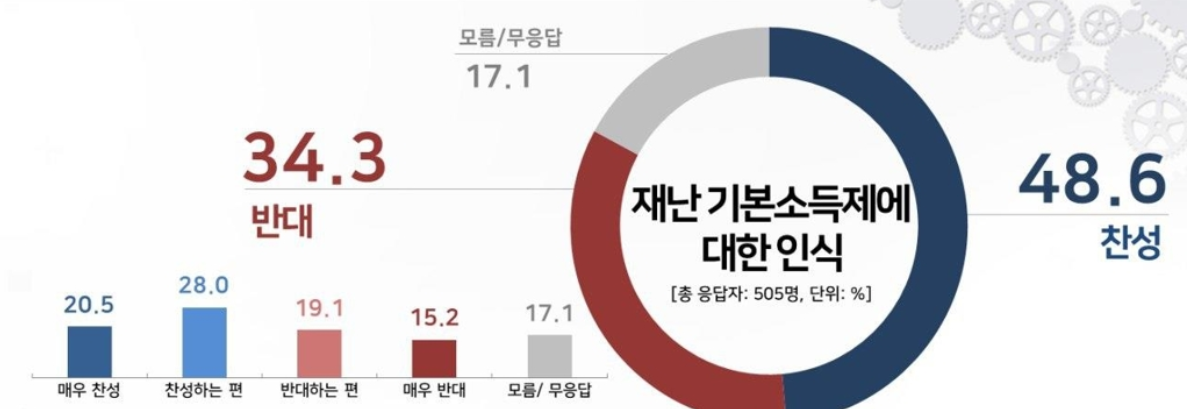 한편 경기 연구원이 한국은행 산업연관표 (2017년 연장표)를 적용해 1인당 10만 원씩 재난 기본소득을 시행했을 때 발생하는 경제적 파급효과를 분석한 자료에 따르면 생산유발효과는 1조 1235억 원, 부가가치 유발효과는 6223억 원, 취업유발효과는 5629억 원으로 조사되었으며