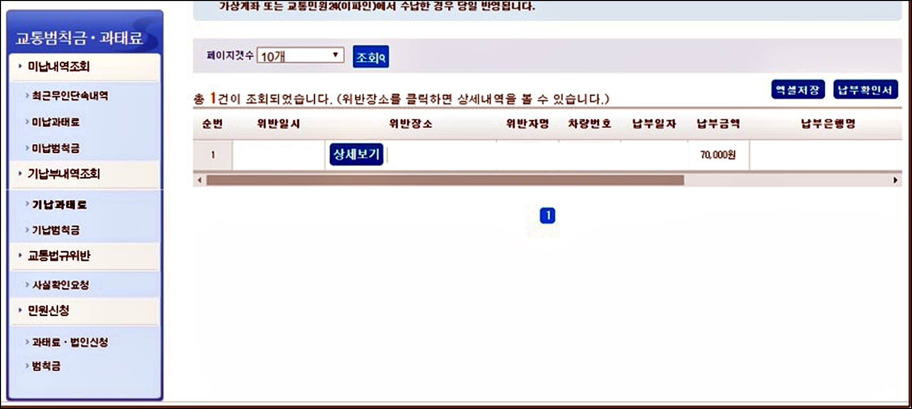 마지막으로, 각 위반 사항별로 상세정보를 클릭하면, 해당 위반에 대한 납부일자, 납부해야 할 금액, 그리고 위반을 한 차량의 번호, 위반 장소 등의 세부 정보를 파악할 수 있습니다.