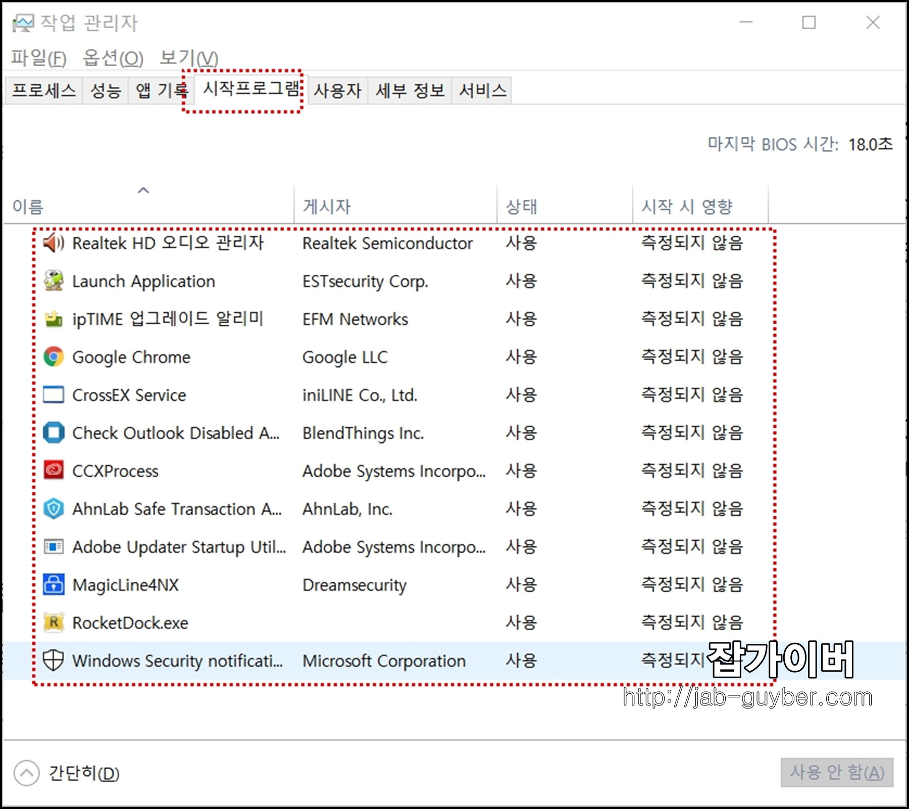 로그인 후 버벅임은 ‘시작프로그램’에서 터지는 경우가 많습니다