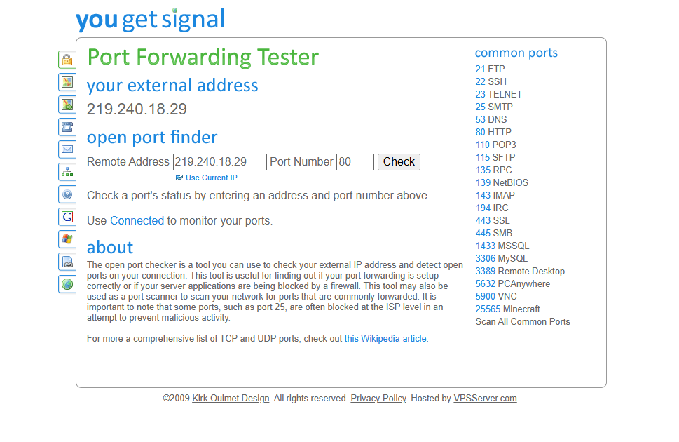 - 포트포워딩 설정 후 포트 오픈 테스트는 YouGetSignal 활용