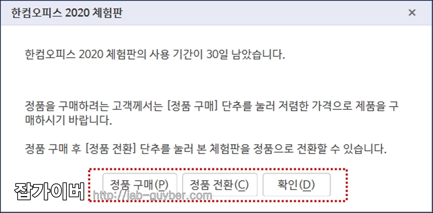 한컴오피스 2020 체험판이 설치되면 기본적으로 30일간 무료로 사용할 수 있습니다.