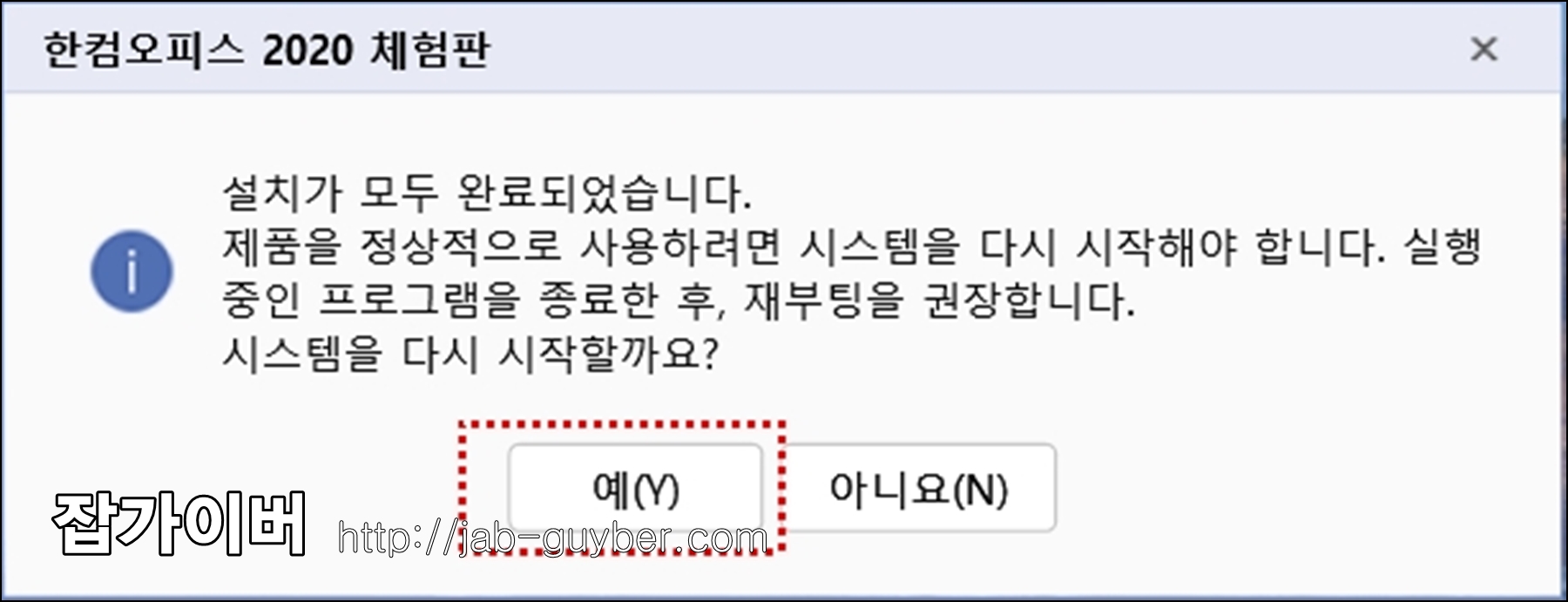 모든 설정이 완료되었다면 컴퓨터를 재부팅 하느것을 권장합니다.