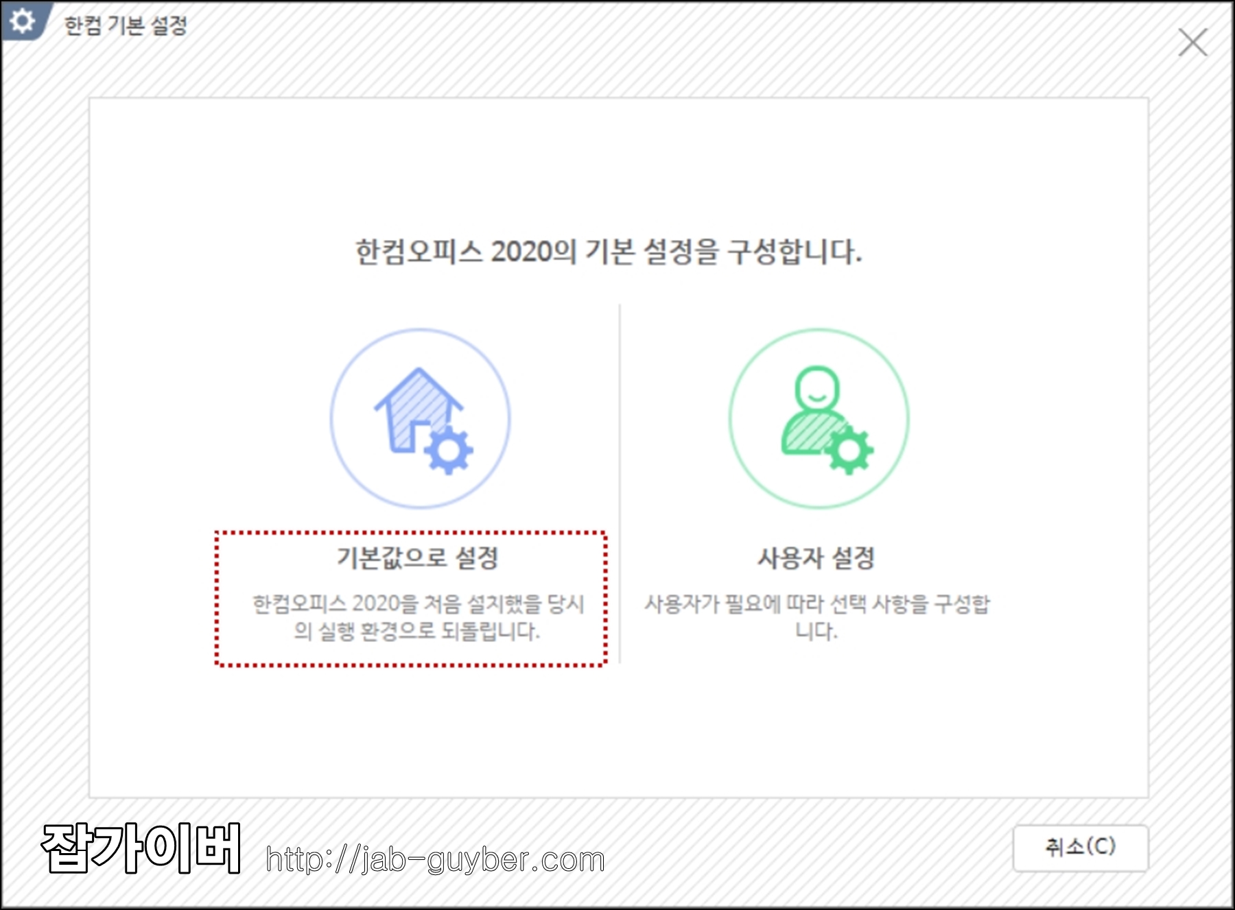 처음 사용하는 분들은 한컴오피스에서 제공하는 기본값을 사용하느것을 추천합니다.
