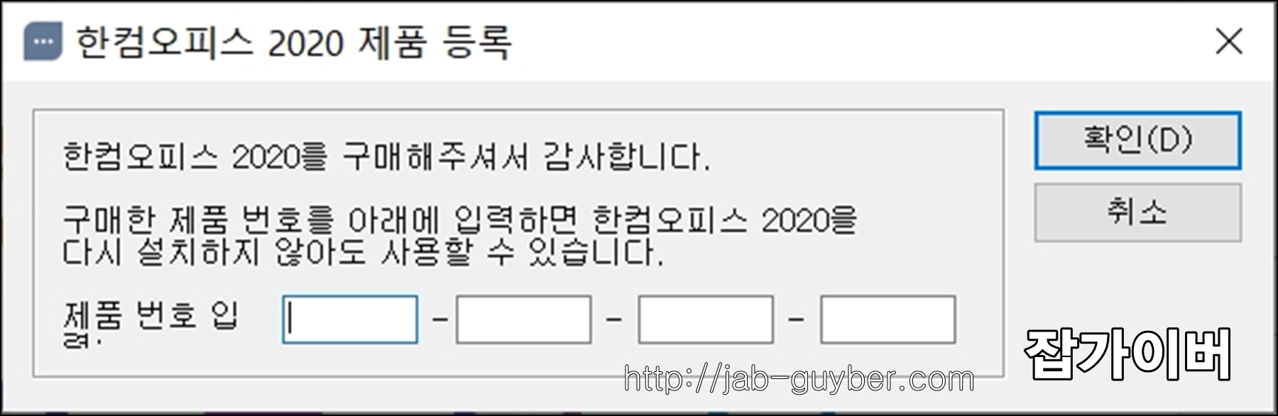 한컴오피스 2020 제품키 등록