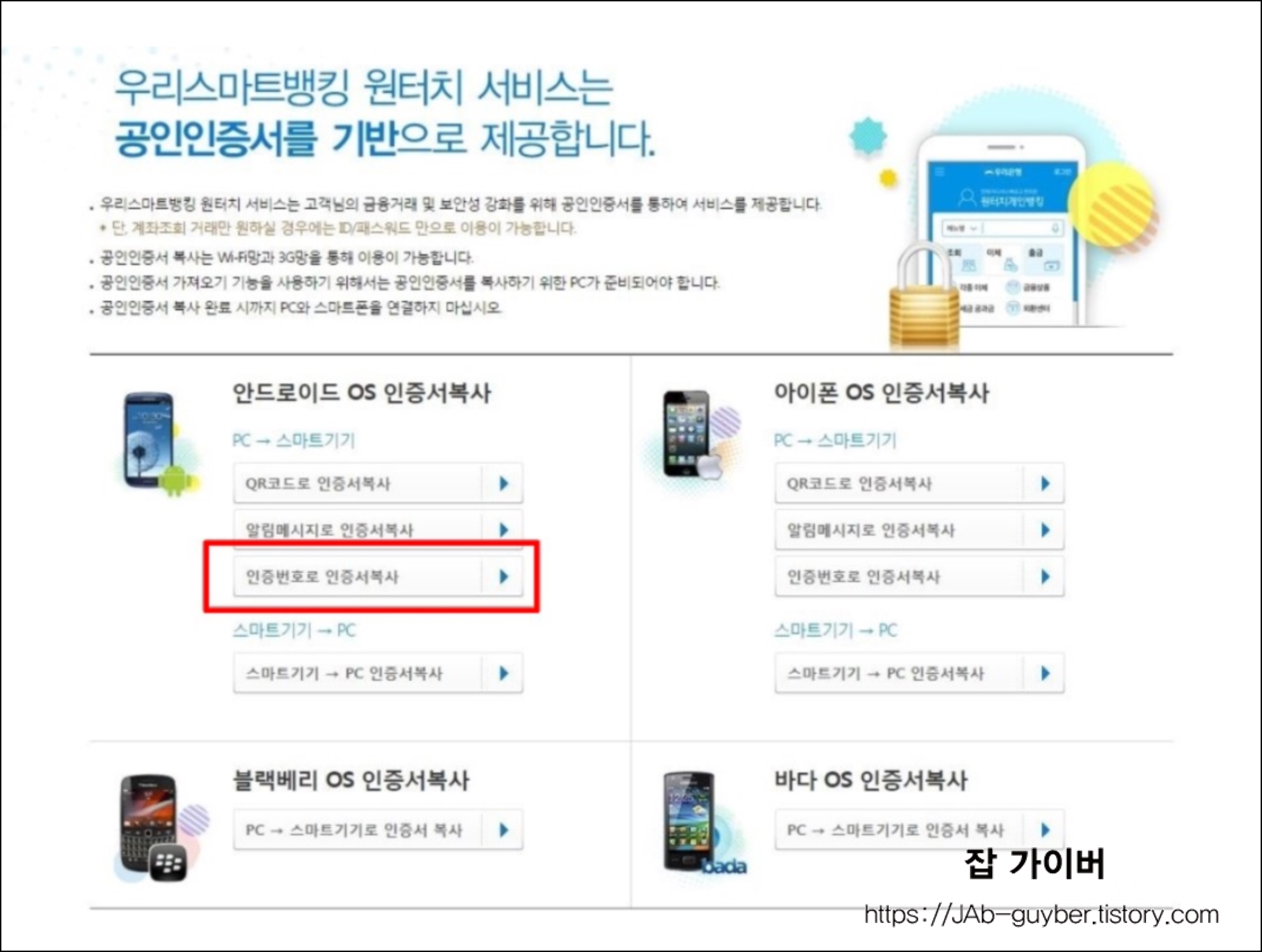 갤럭시 안드로이드, 아이폰… 스마트폰 종류별 공인인증서 복사 선택