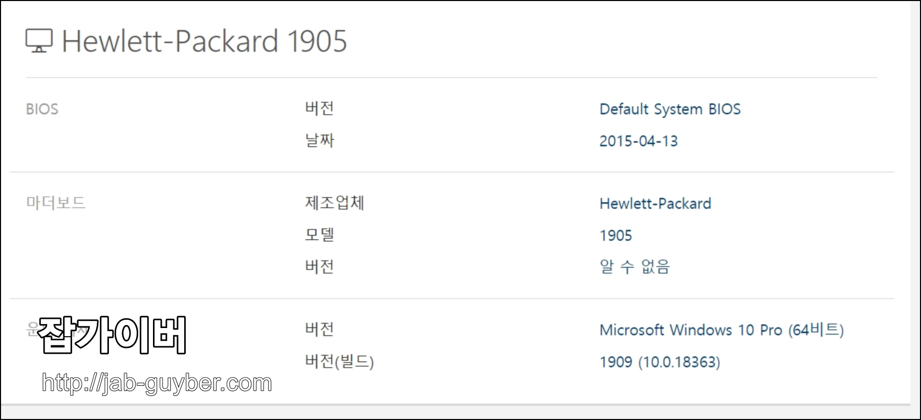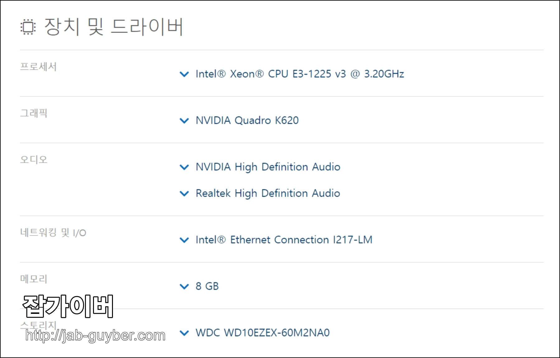그럼 현재 장착된 컴퓨터의 부품에 대한 모델명 및 설치된 버전을 확인할 수 있습니다.