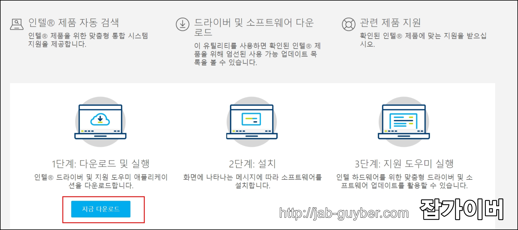 하단에 있는 "지금 다운로드"를 이용하면 자동으로 인텔 칩셋 드라이브를 자동검색해서 다운로드가 됩니다.