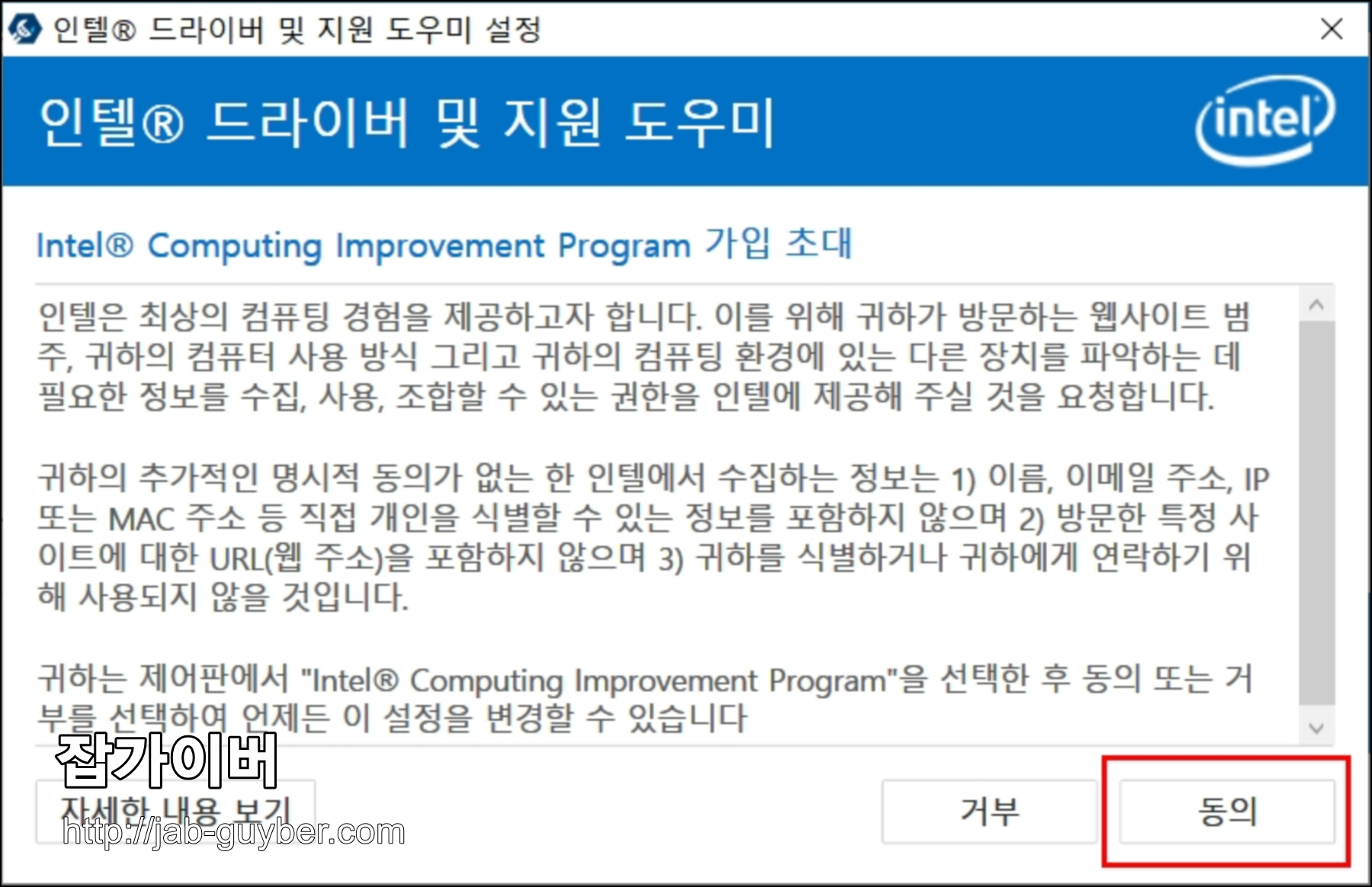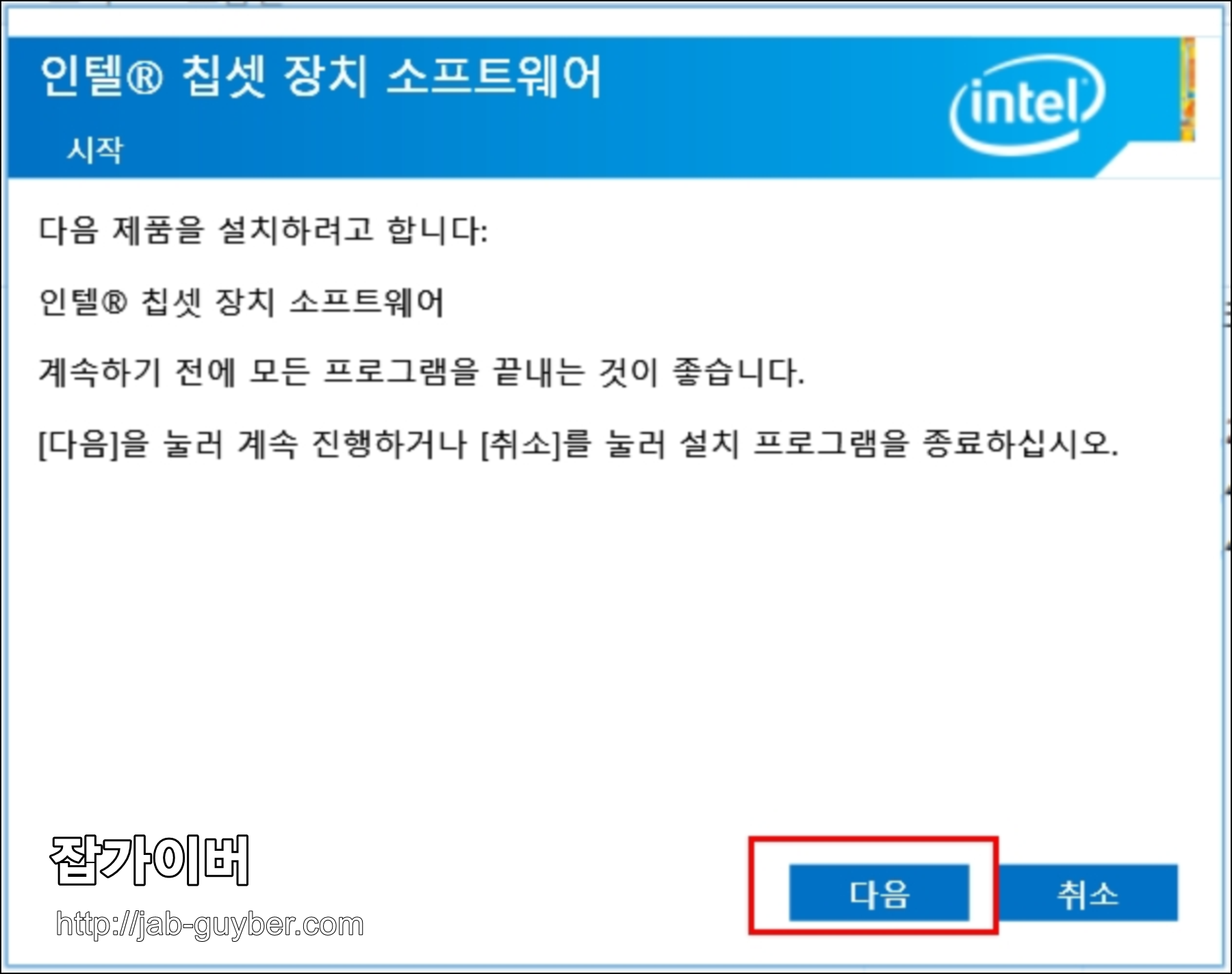 인텔 드라이브 및 지원 도우미를 설치합니다.