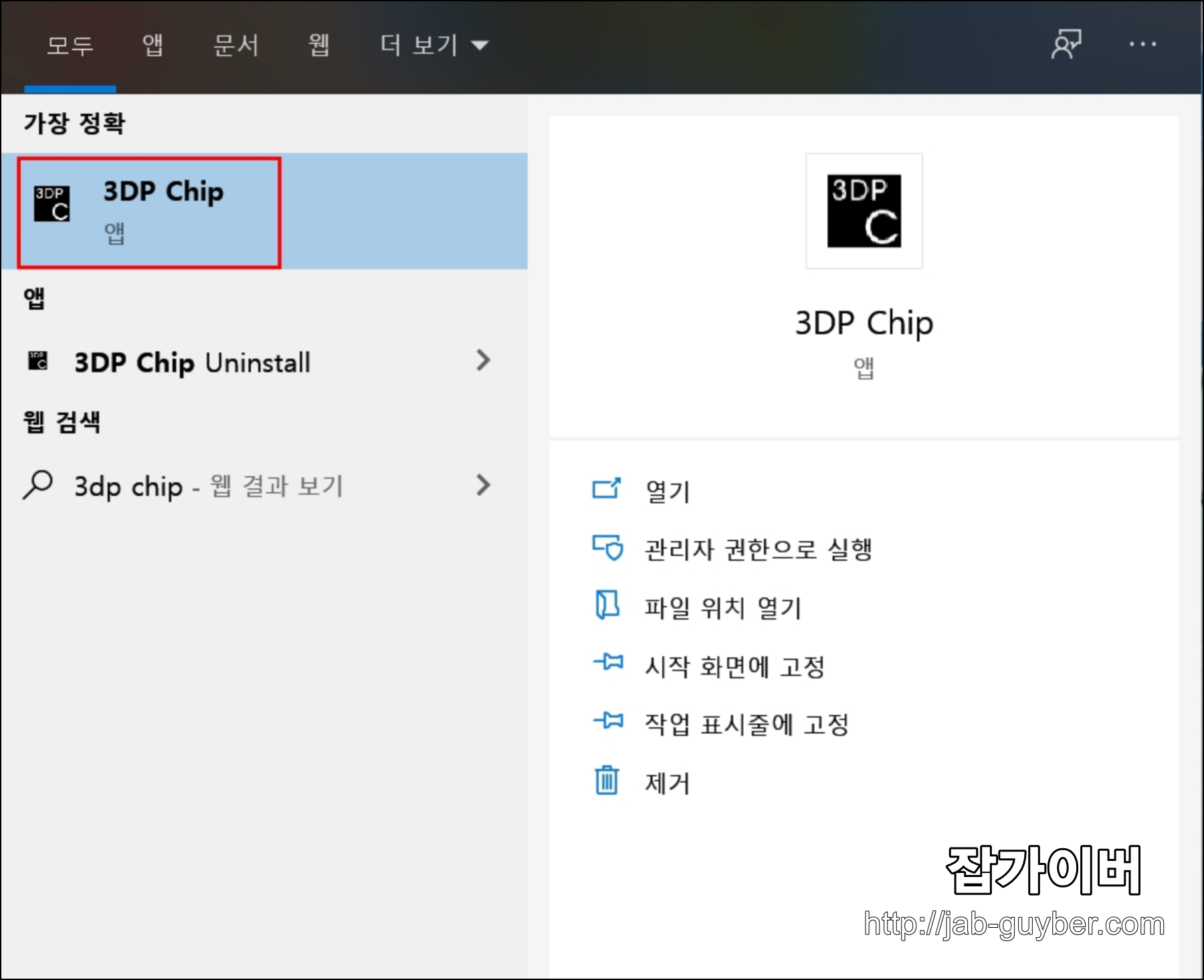 3DP Chip을 다운로드 후 설치해서 실행합니다.