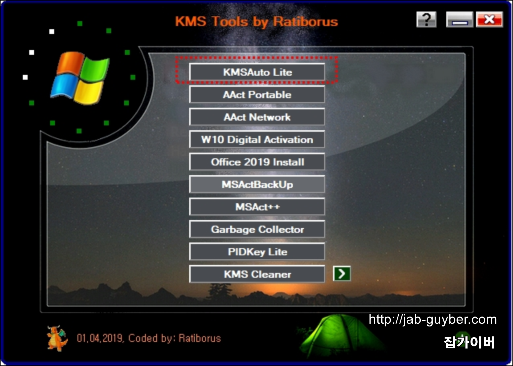 KMSAutoLite를 실행하기 위해서는 KMS Tool Portable이라는 프로그램을 이용하면 다양한 KMS 인증프로그램을 사용할 수 있습니다.