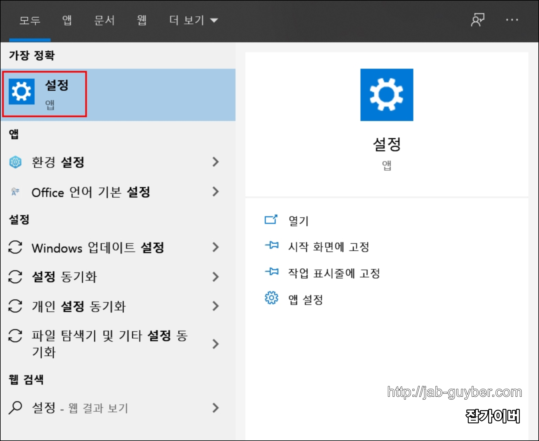 윈도우10에서 제공하는 윈도우설정을 통해서도 별도의 프로그램 설치 없이 관리가 가능합니다.
