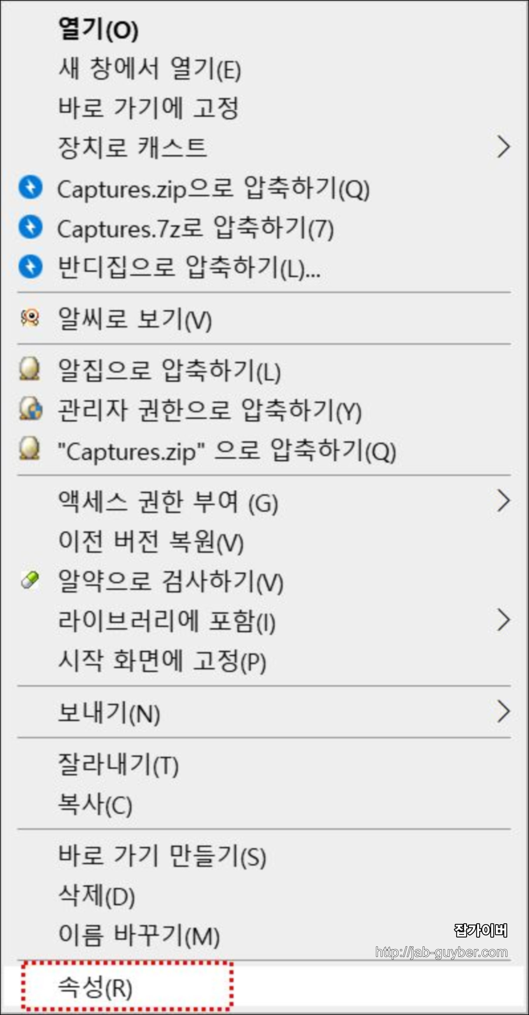 암호화할 폴더(또는 파일)에서 속성으로 들어갑니다.