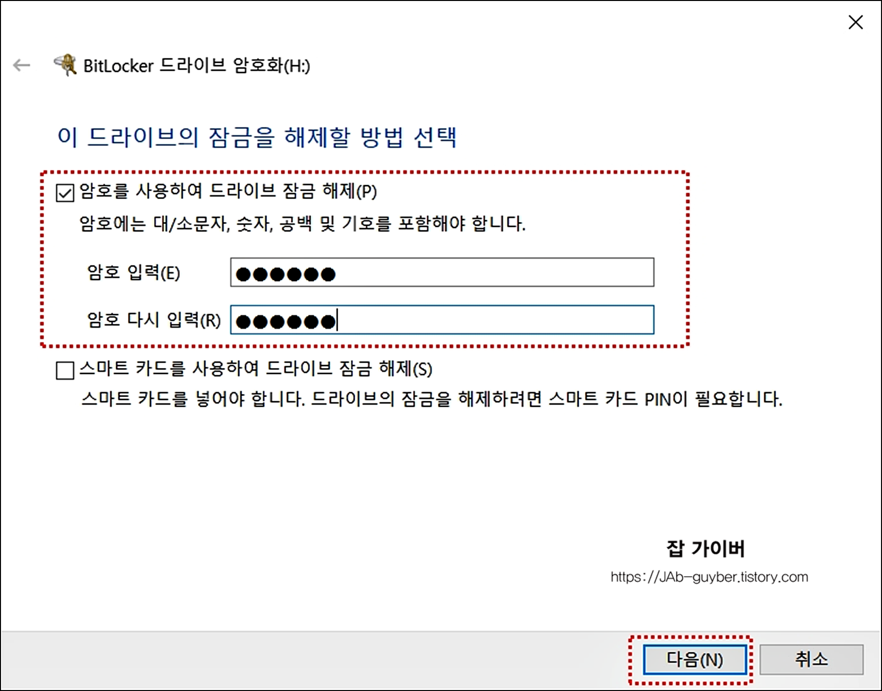 | 외장하드·USB 분실이 가장 걱정된다 | BitLocker(드라이브 전체 암호화) | 복구키 관리가 핵심, 윈도우 버전에 따라 메뉴가 다름 |