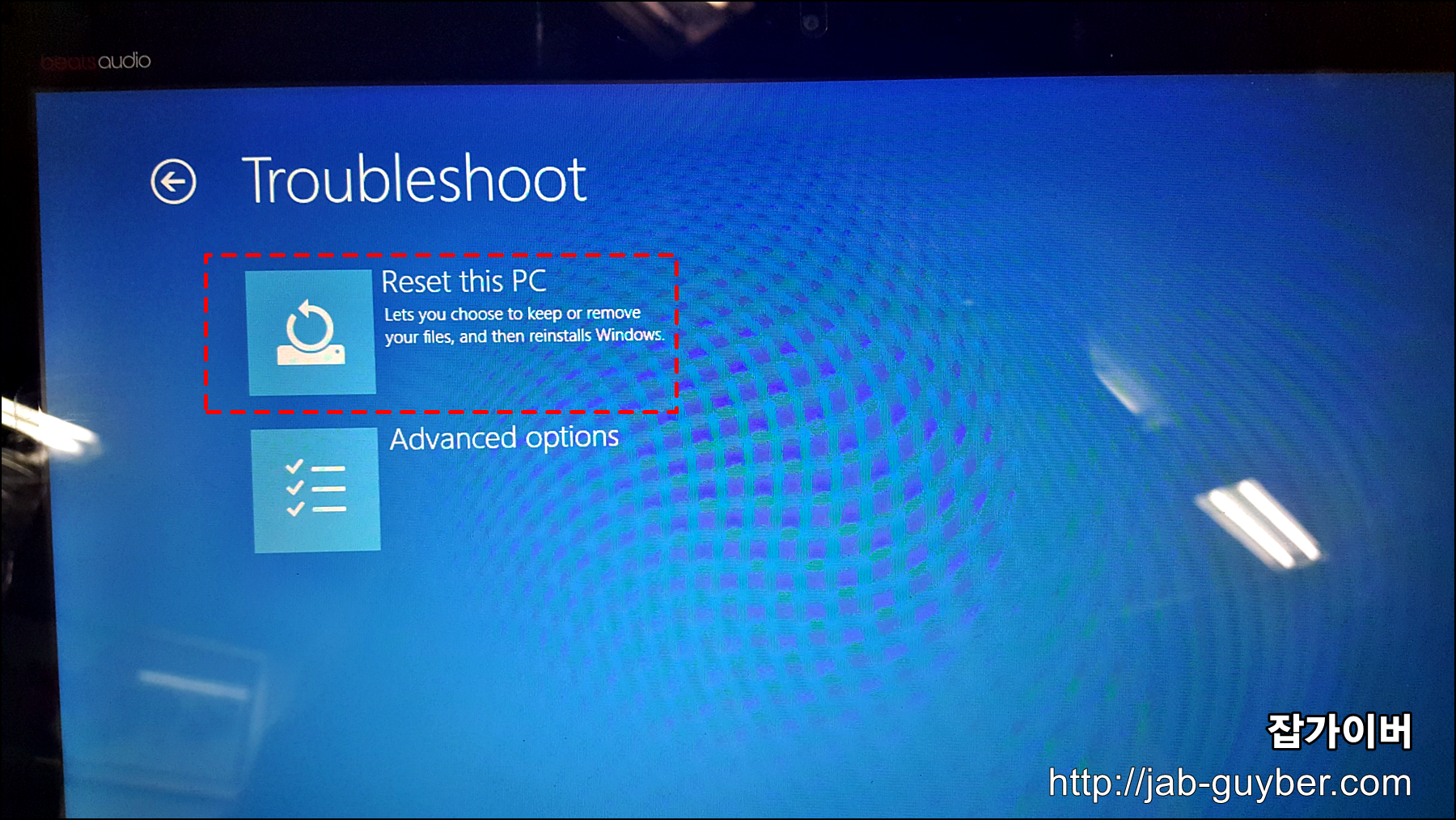 그럼 재부팅하면서 파일을 보관할것인지 "Keep My Files"와 모든 데이터를 삭제할 것인지 "Remove Everything"을 선택합니다.