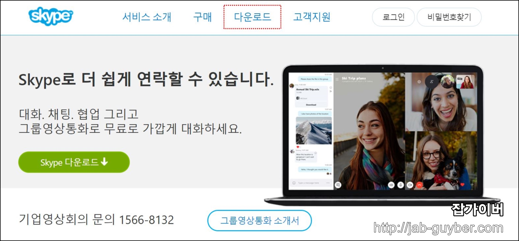 스카이프 홈페이지를 통해 "다운로드"가 가능합니다.