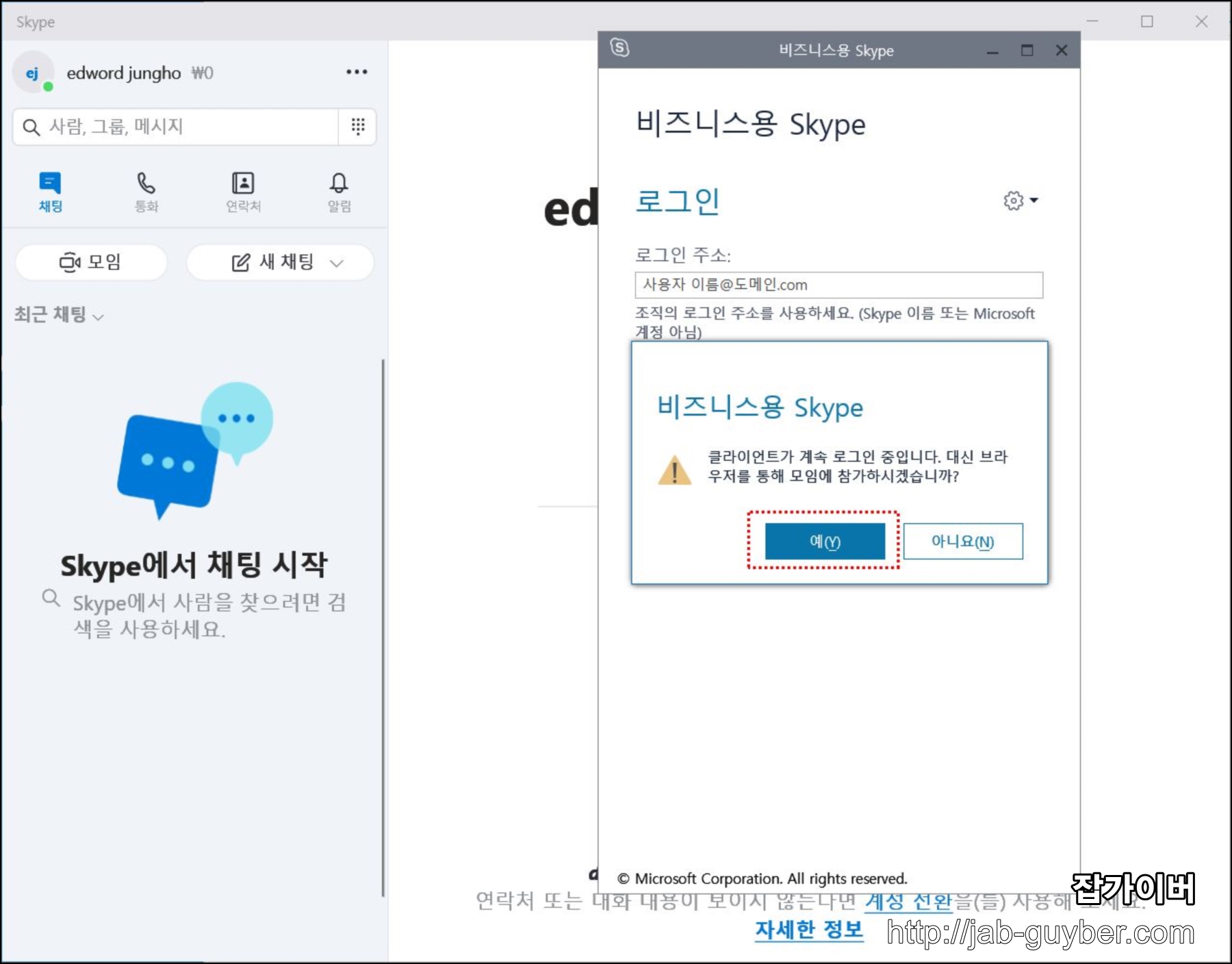 스카이프 비지니스 설치 및 Lync Wep App 접속방법