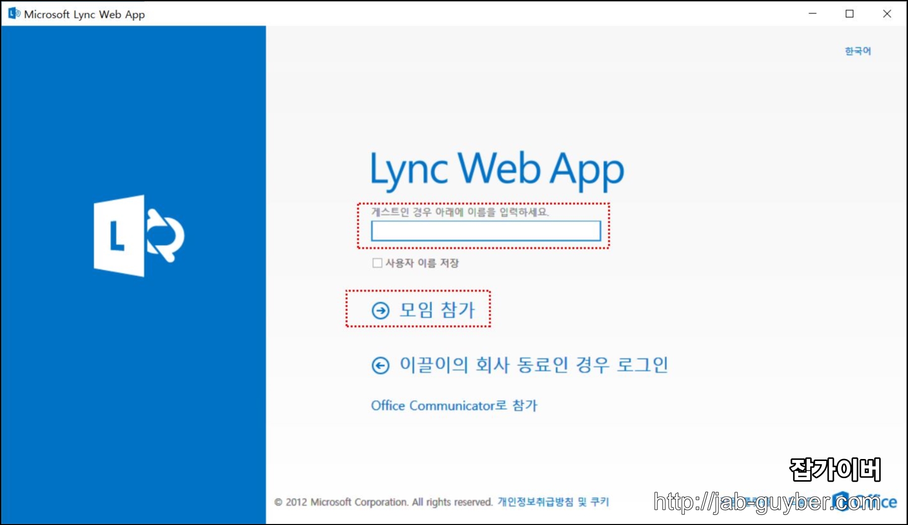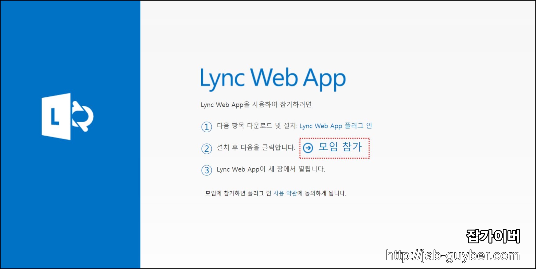 비지니스용 Lync Wep App "모임참가"를 선택합니다.