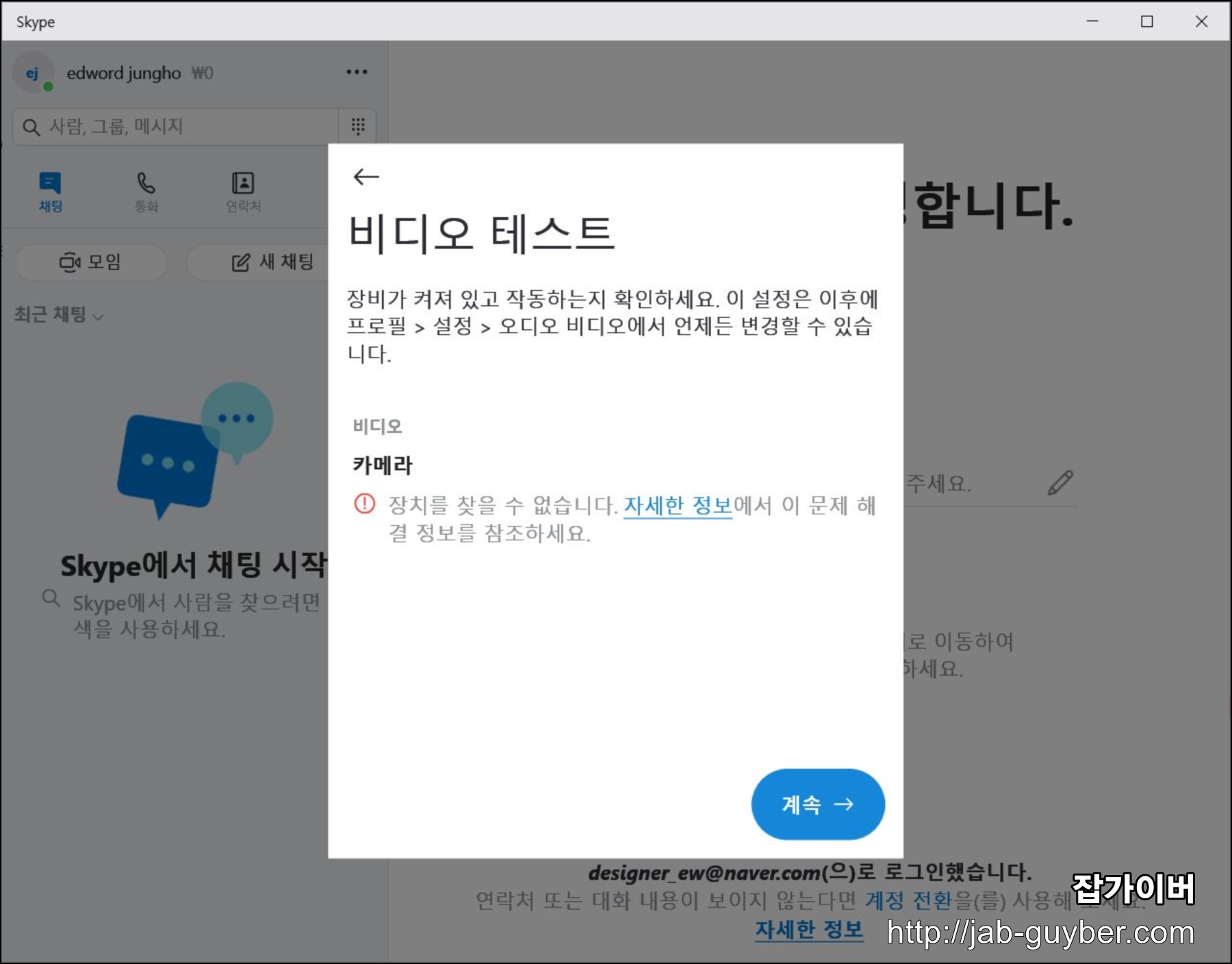 스카이프 화상 카메라 오디오 옵션 설정