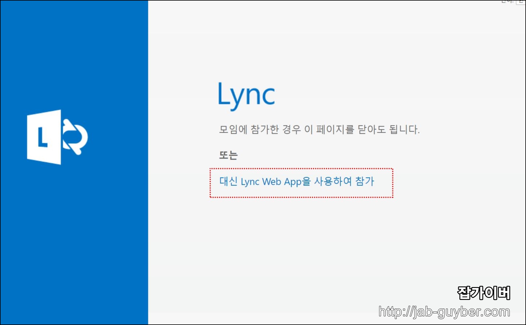 기업용 화상채팅인 스카이프 비즈니스용에 접속하기 위해서는 "Lync Web App"를 이용해 대화에 참여합니다.