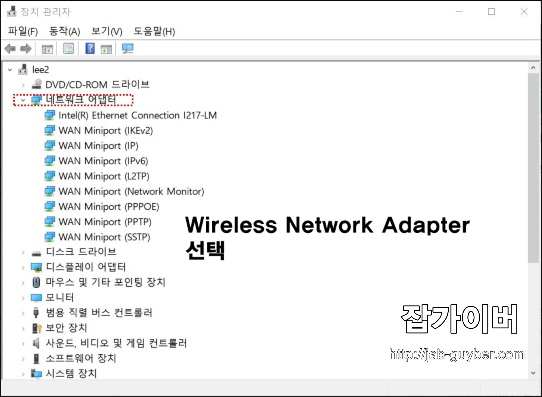 네트워크 어댑터 항목에서 "Wireless Network Adapter"를 선택합니다.