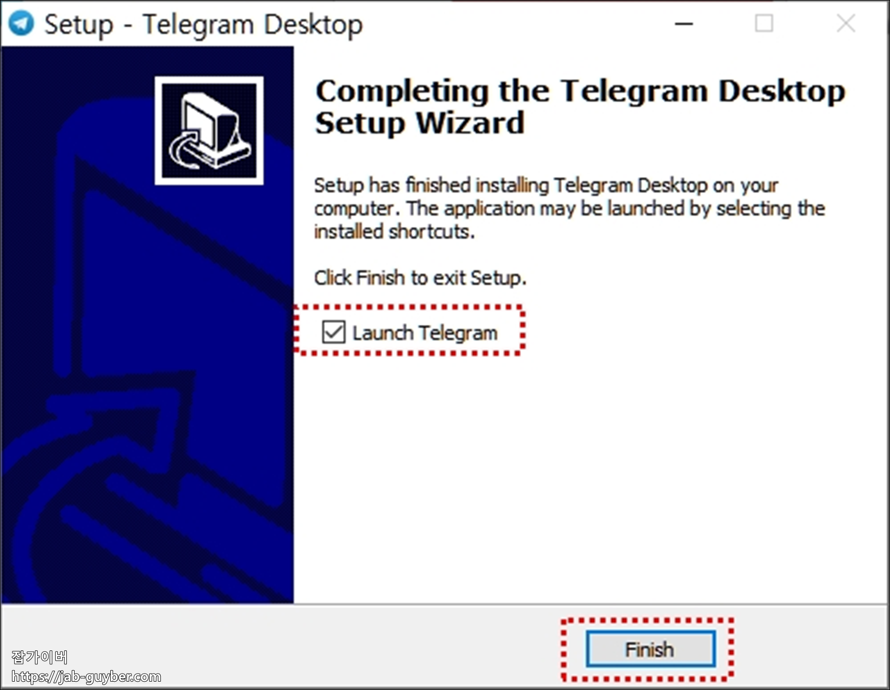 바탕화면에 Telegram 아이콘을 생성하고 싶다면 "Create a desktop shortcut"을 체크합니다.
