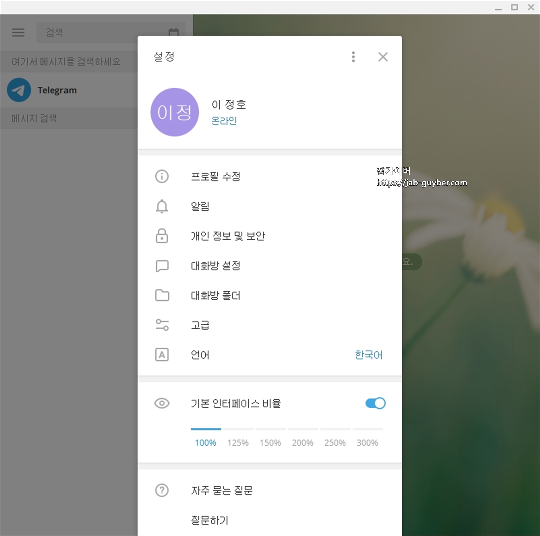 설정을 통해 텔레그램 프로필을 수정할 수 있습니다.