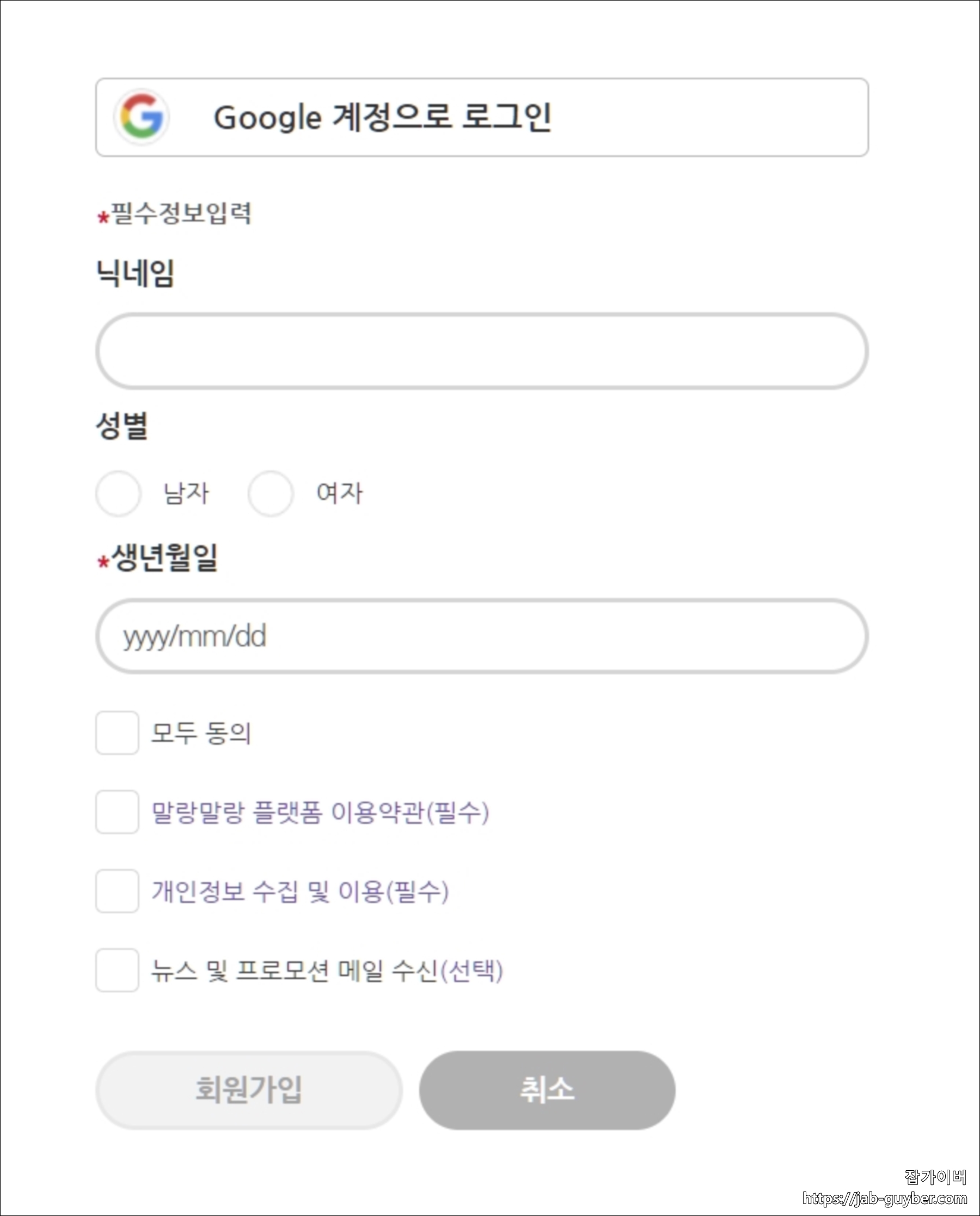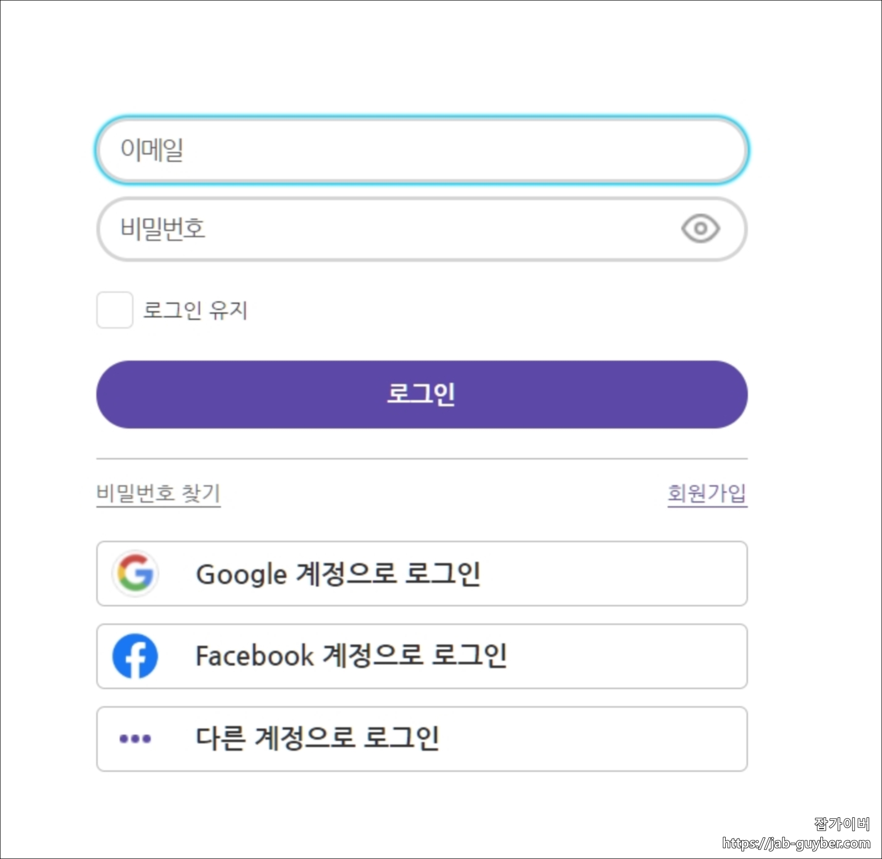 기본적으로 구글 계정 및 페이스북 계정으로도 로그인이 가능합니다.