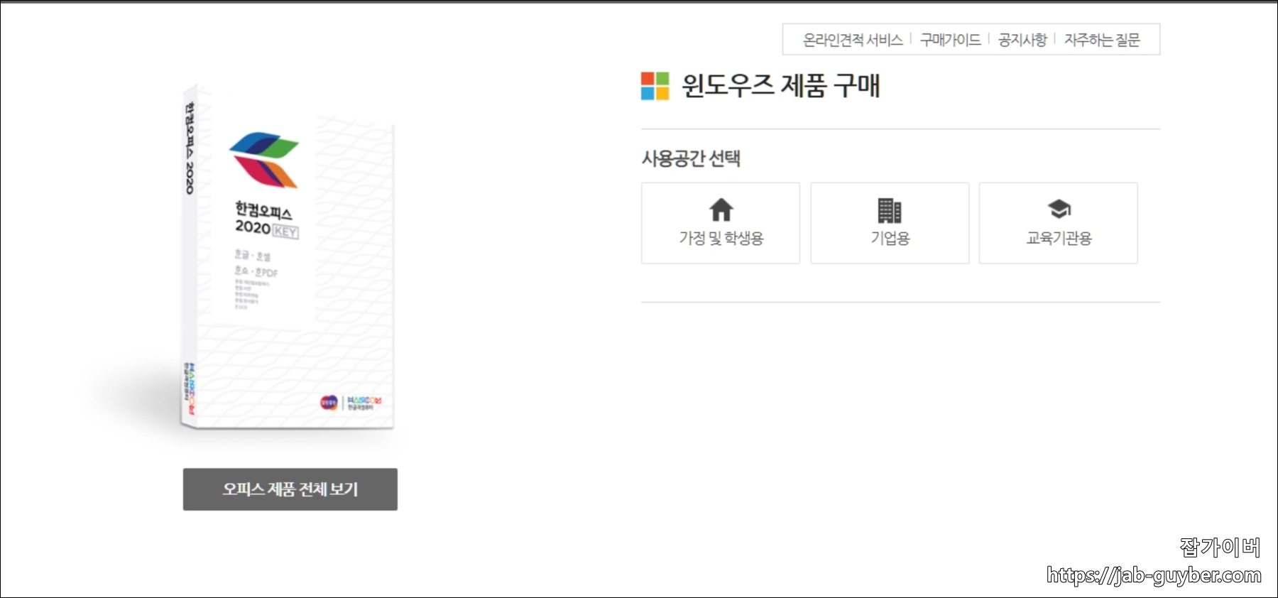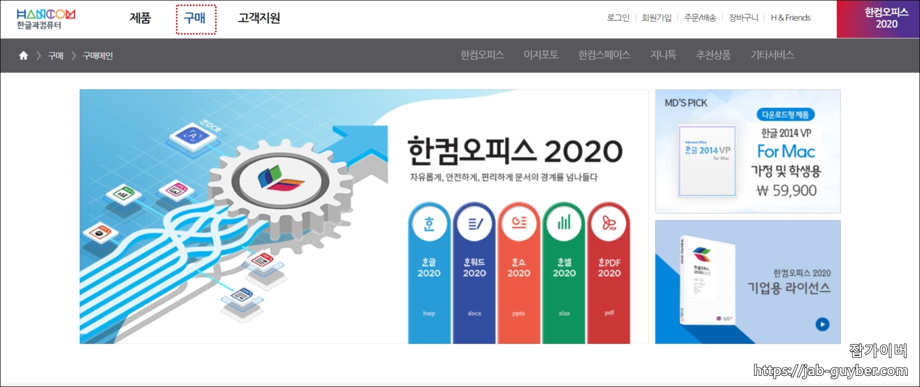 그리고 한컴오피스 2020 가정 및 학생용을 구입 및 다운로드도 가능합니다.