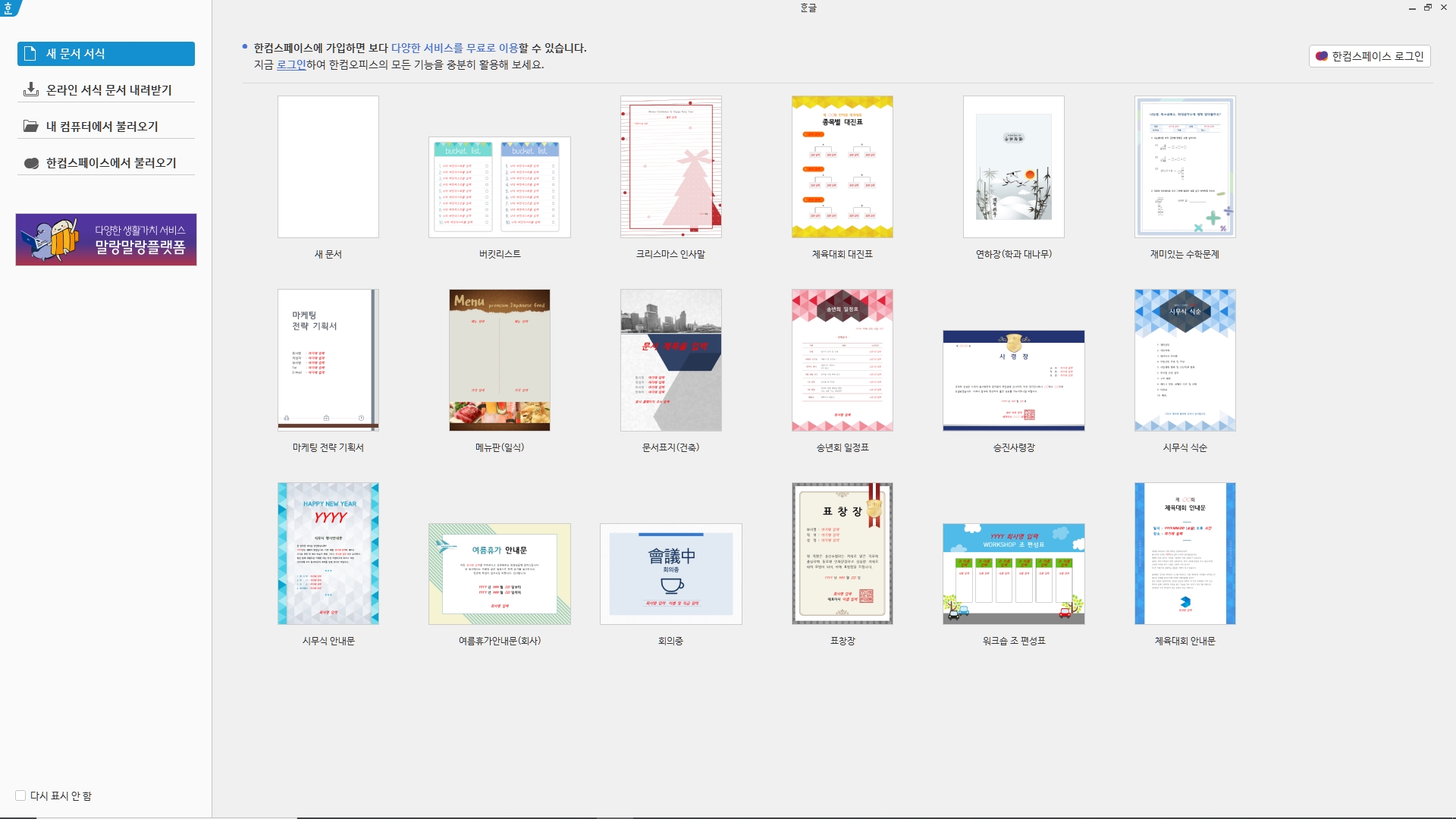 한컴오피스 2020 학생용 체험판 다운로드 설치