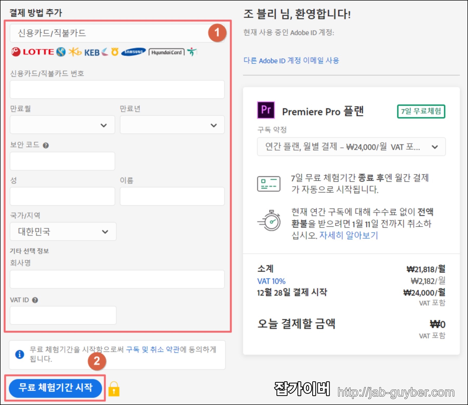 무료 체험판만 사용하고 싶다면 7일 이전에 결제를 취소하는 것이 좋습니다.