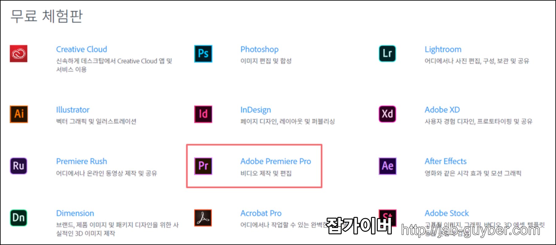 Adobe 사이트에 들어가서 무료 체험판을 다운로드 할 수 있습니다.