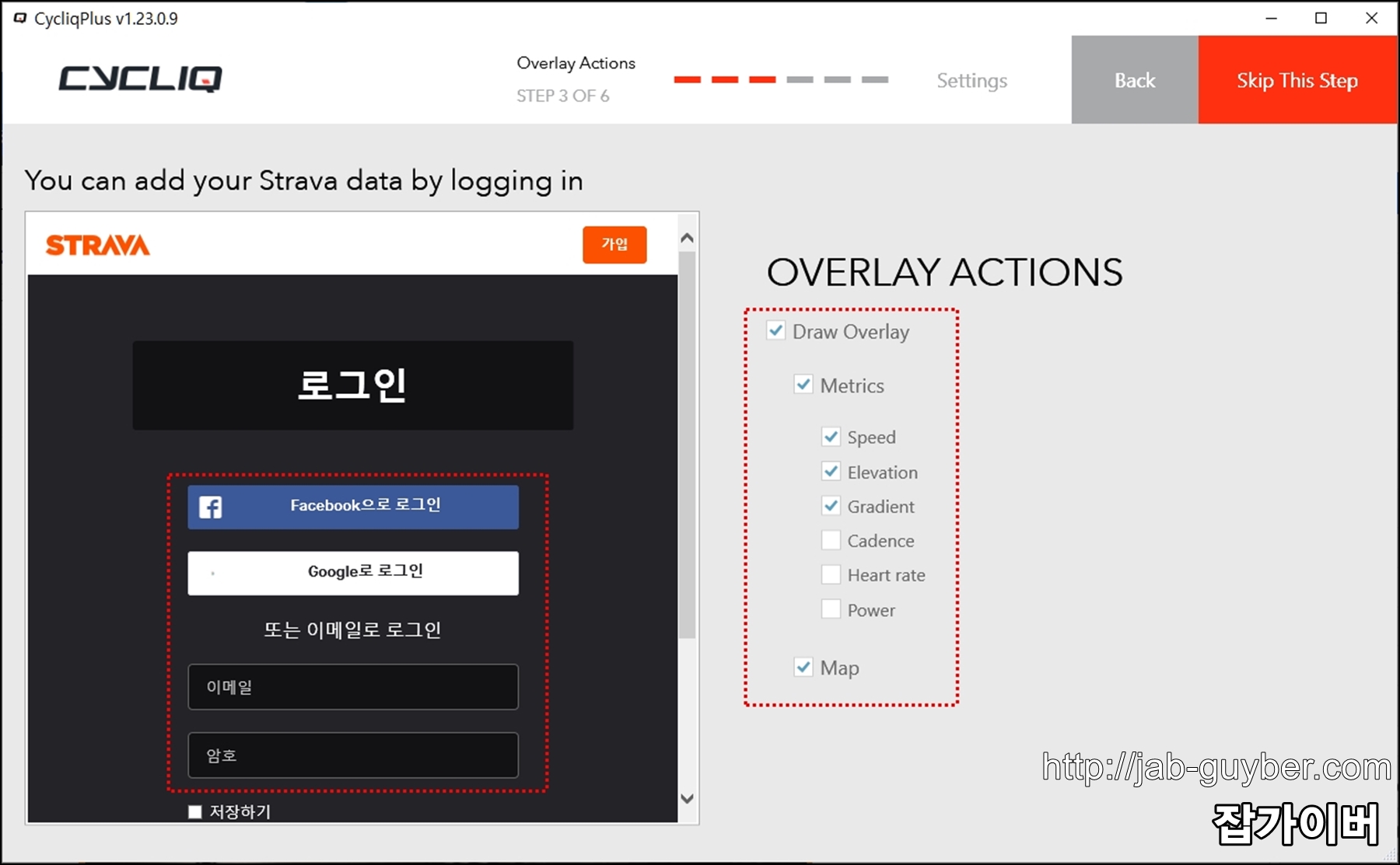 그리고 동영상에 표시하고 싶은 정보를 스트라바와 연동해서 삽입할 수 있습니다.