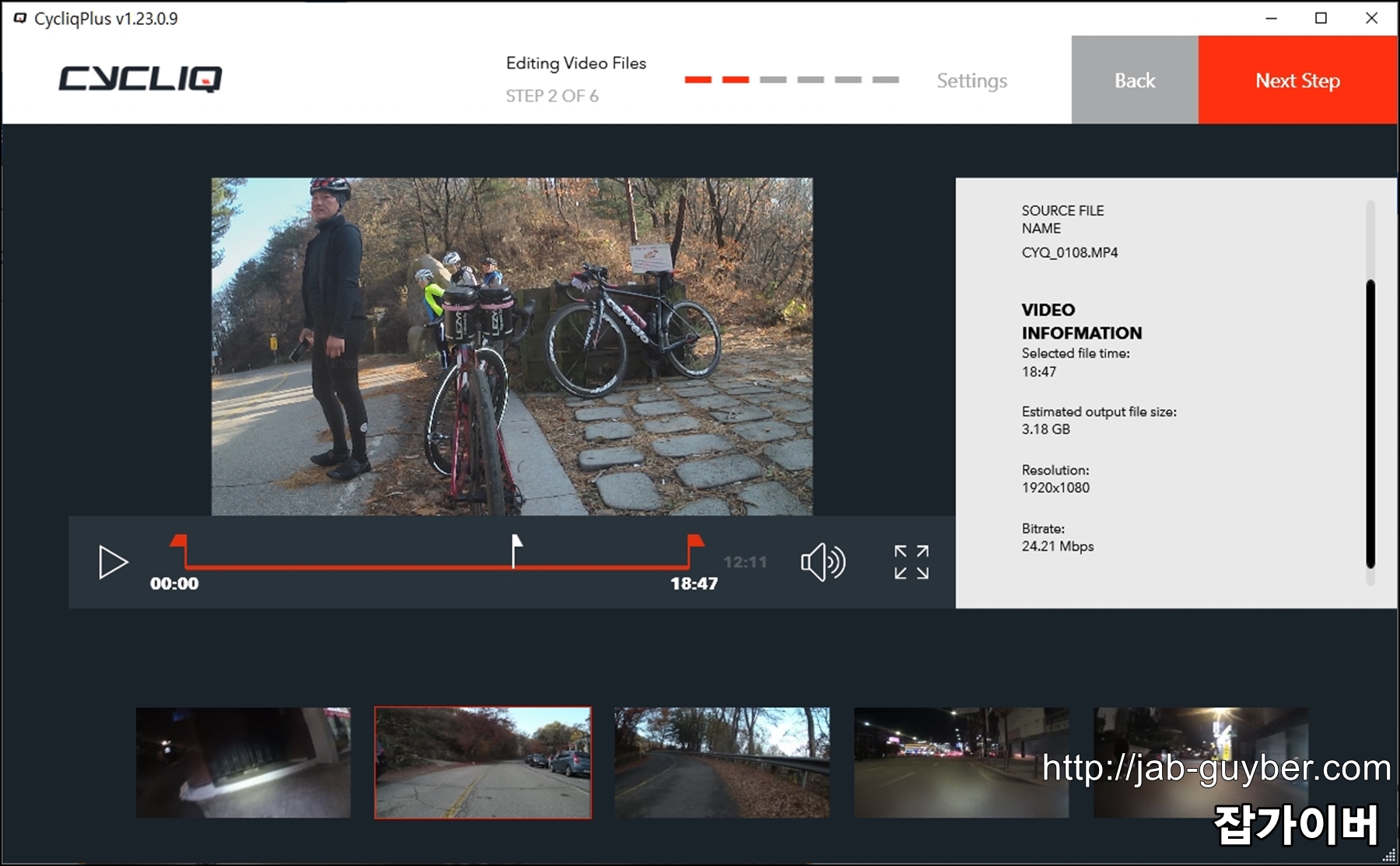 이후 촬영된 자전거 라이딩 동영상을 선택합니다.