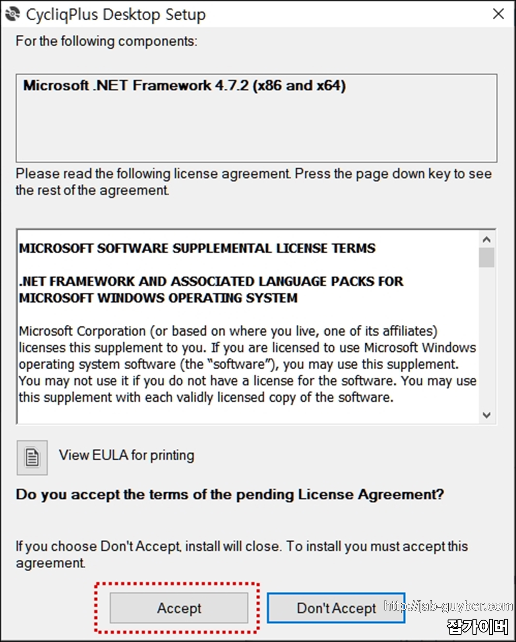 설치 시 기본적으로 마이크로소프트의 Net Framework 설치되어 있어야 합니다.