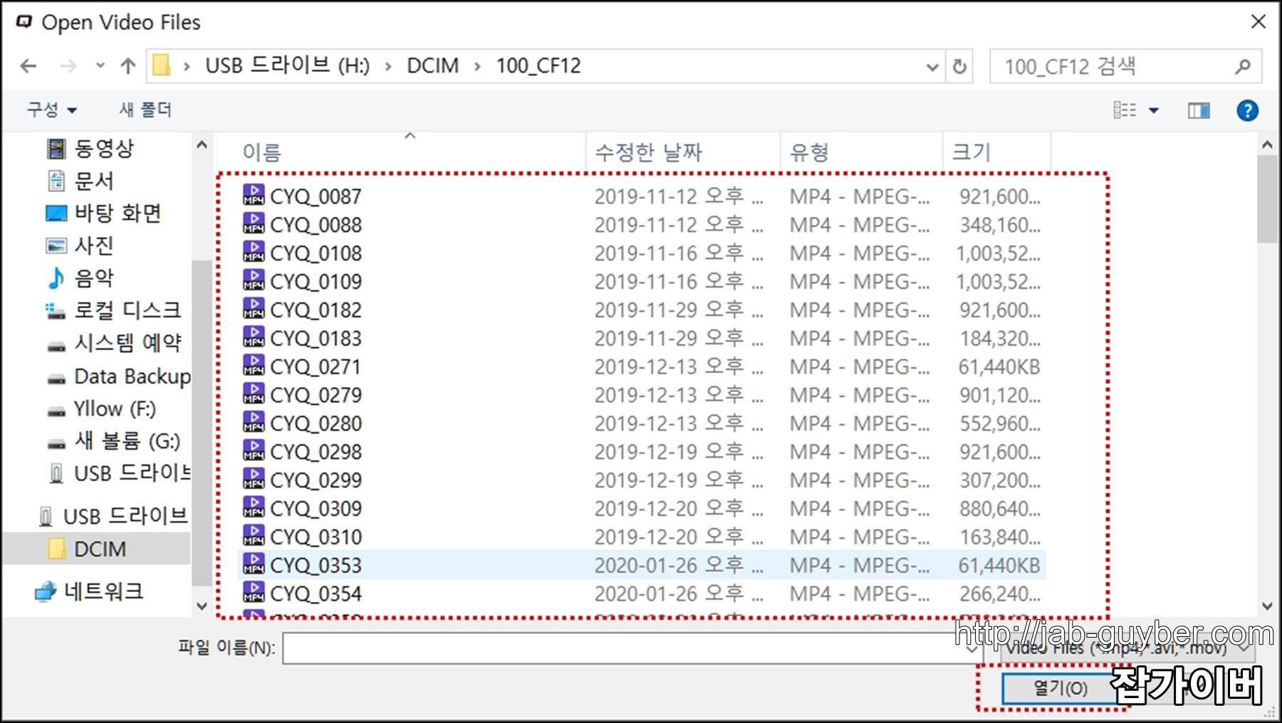 동영상 미리보기를 통해 원하는 엿아을 선택합니다.