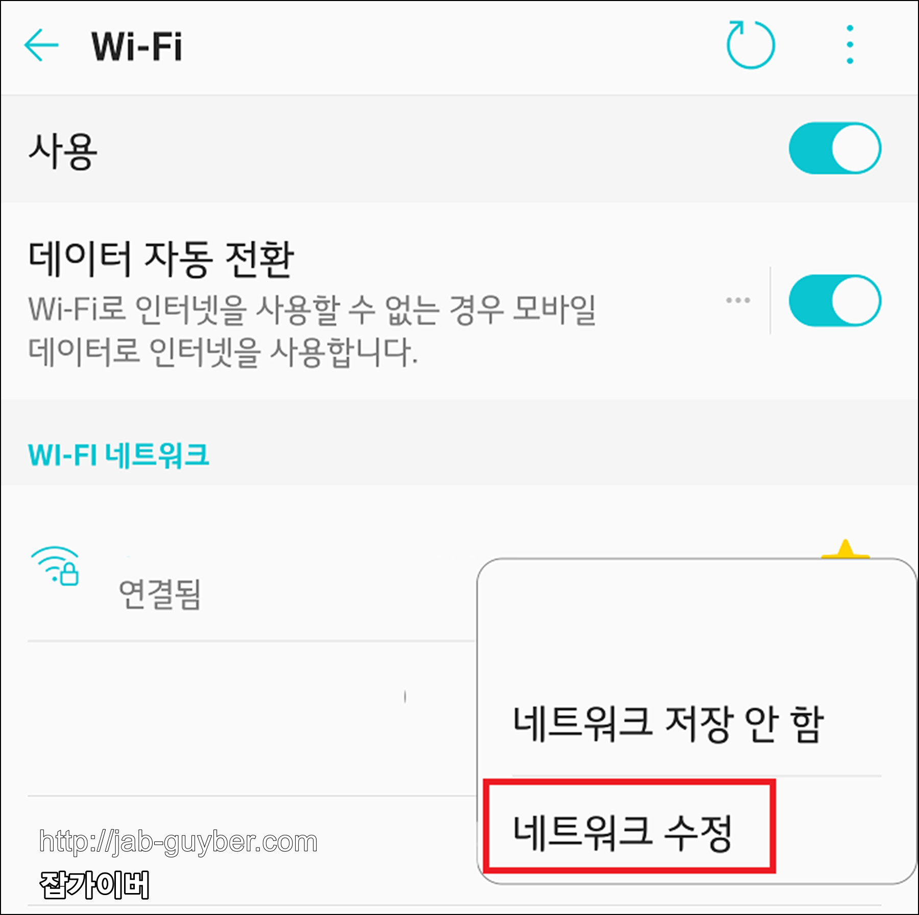 이는 별도의 앱을 설치하지 않고도 네트워크 설정으로 변경이 가능한 장점이 있으며 WIFI 이용 시에만 해당된다는 제한이 있으니 참고하세요