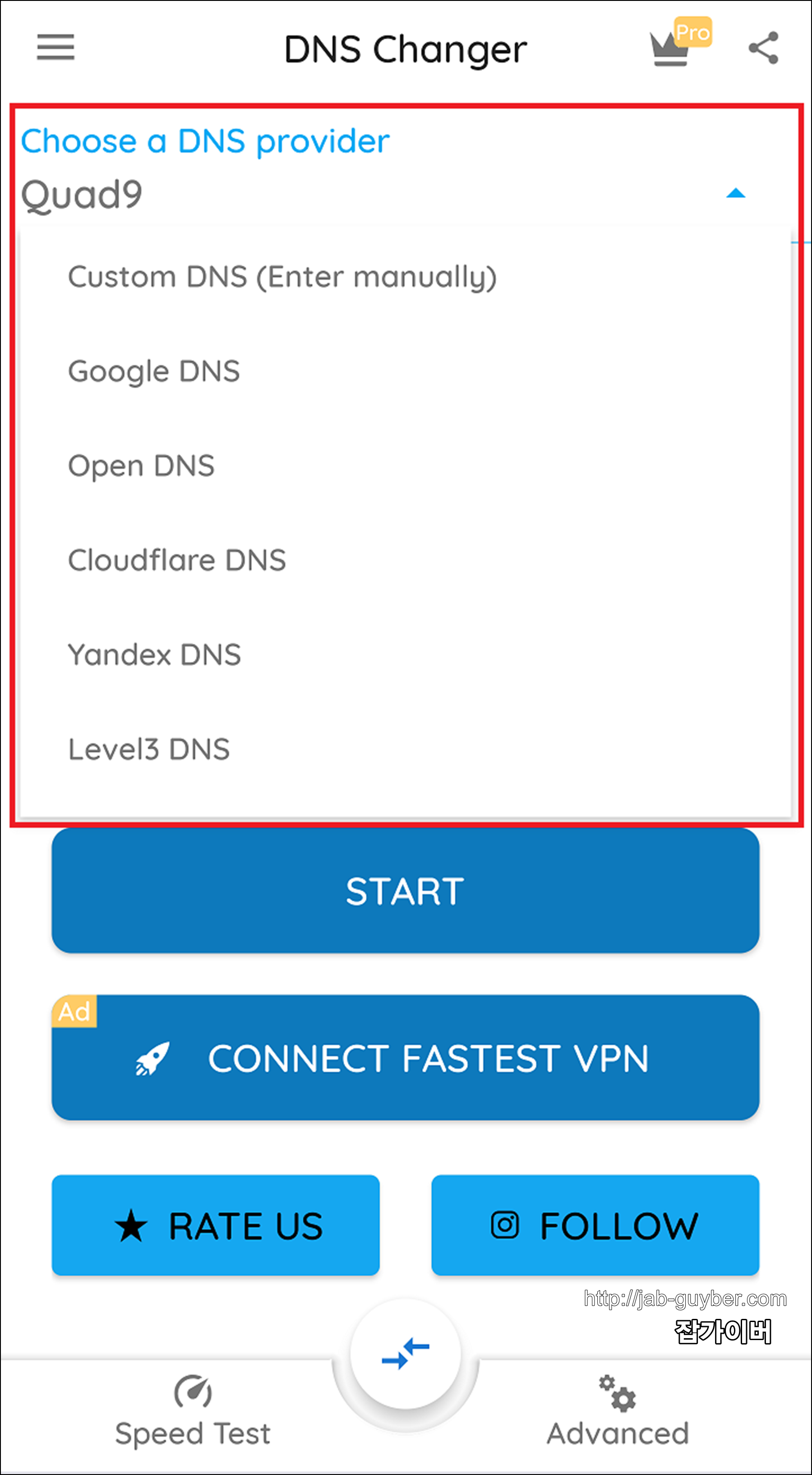 - 앱을 설치했다면 DNS Changer 앱을 실행합니다.