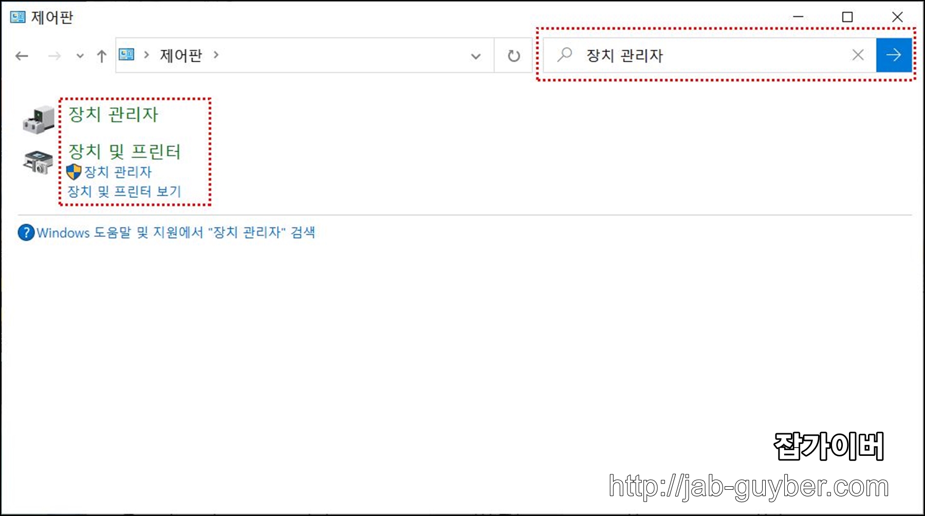 우측 상단에 "장치 관리자"를 검색해서 실행합니다