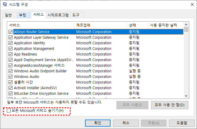 시스템 구성(msconfig)으로 부팅 최적화