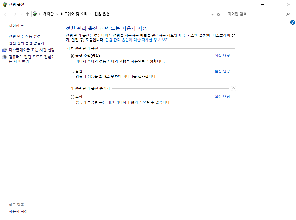 장치 관리자에서 전원 설정을 조정할 때는, 제어판 > 전원 옵션 > 고급 전원 설정 변경으로 들어가면 보다 세부적인 설정이 가능해요.