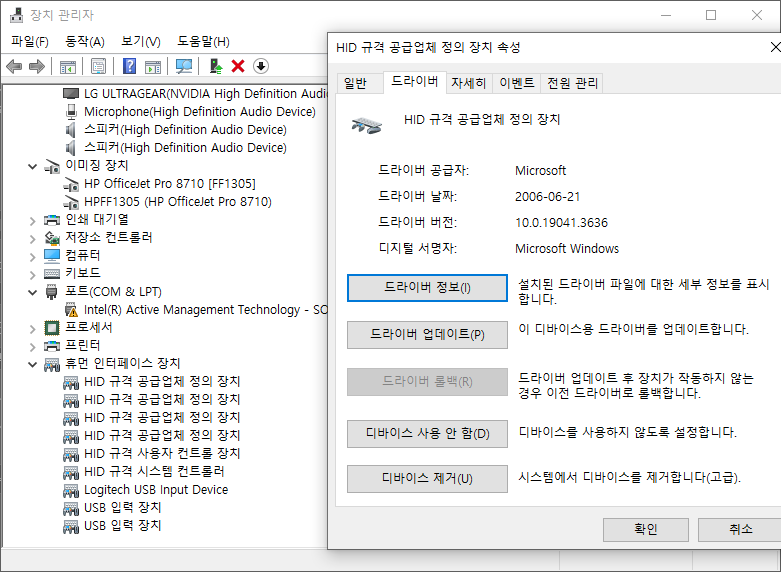 가끔 윈도우에서 자동으로 설치된 최신 드라이버가 기기와 호환되지 않는 경우도 있습니다. 이럴 땐 '드라이버 롤백' 기능을 활용하세요.