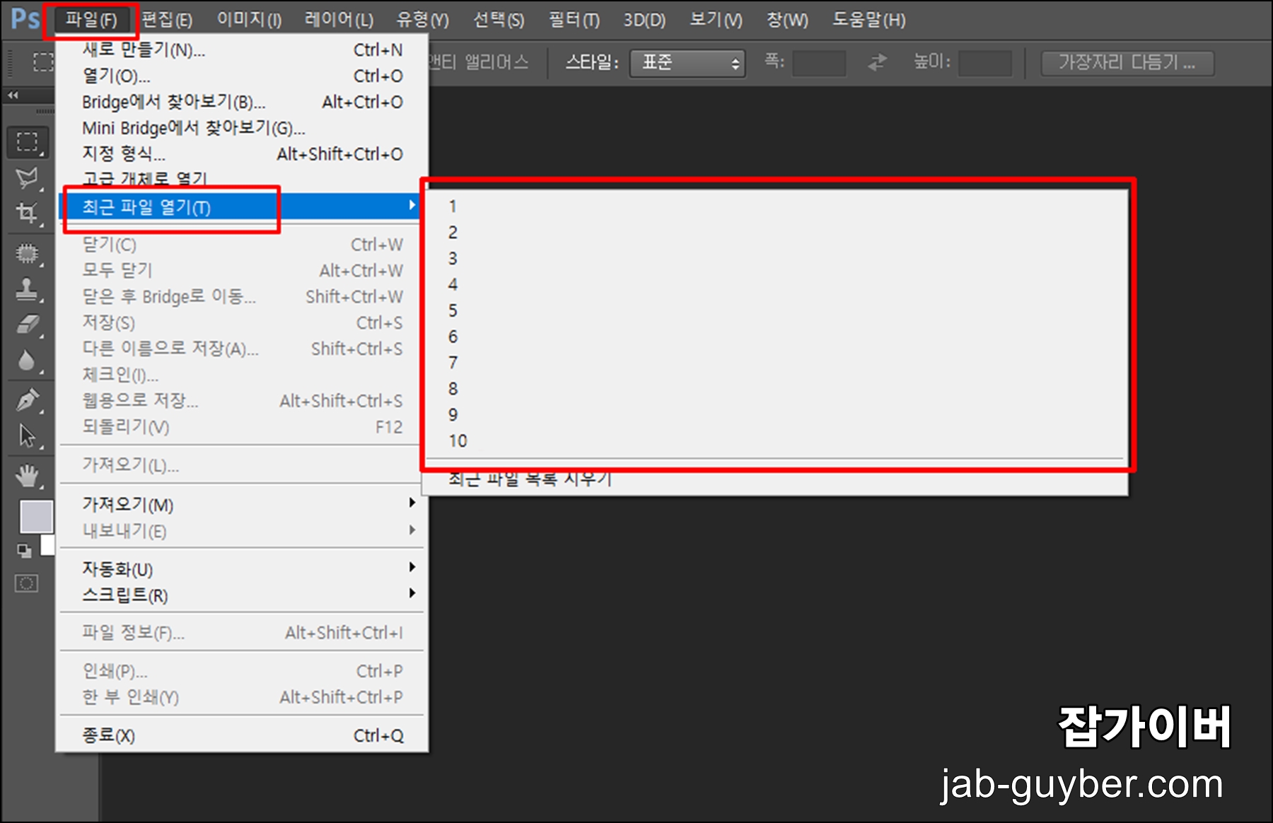 포토샵 CC 2020 최근항목 열기파일 삭제방법