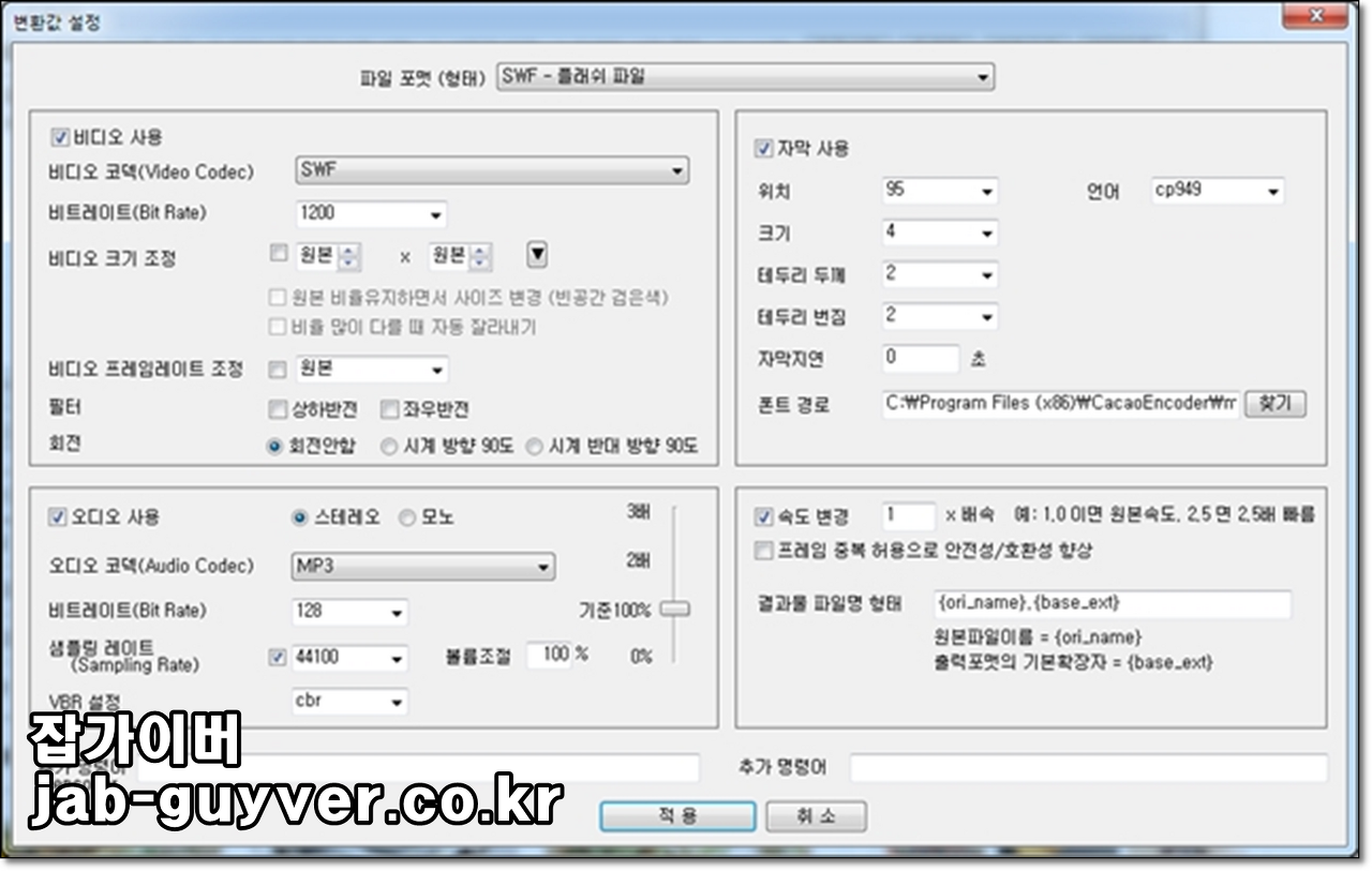 - 동영상에 자막 덧입히기 (자막 파일을 지원하지 않는 기기에서도 자막 감상 가능)