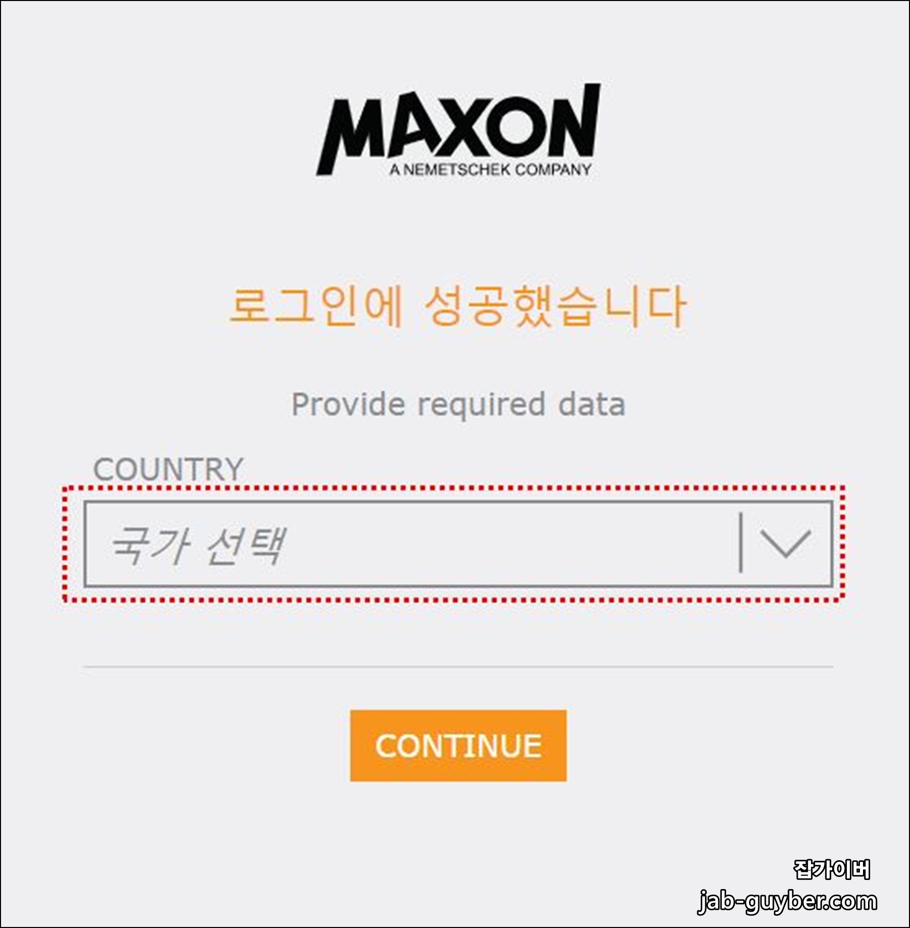 대한민국으로 선택 후 "Continue"를 클릭합니다.