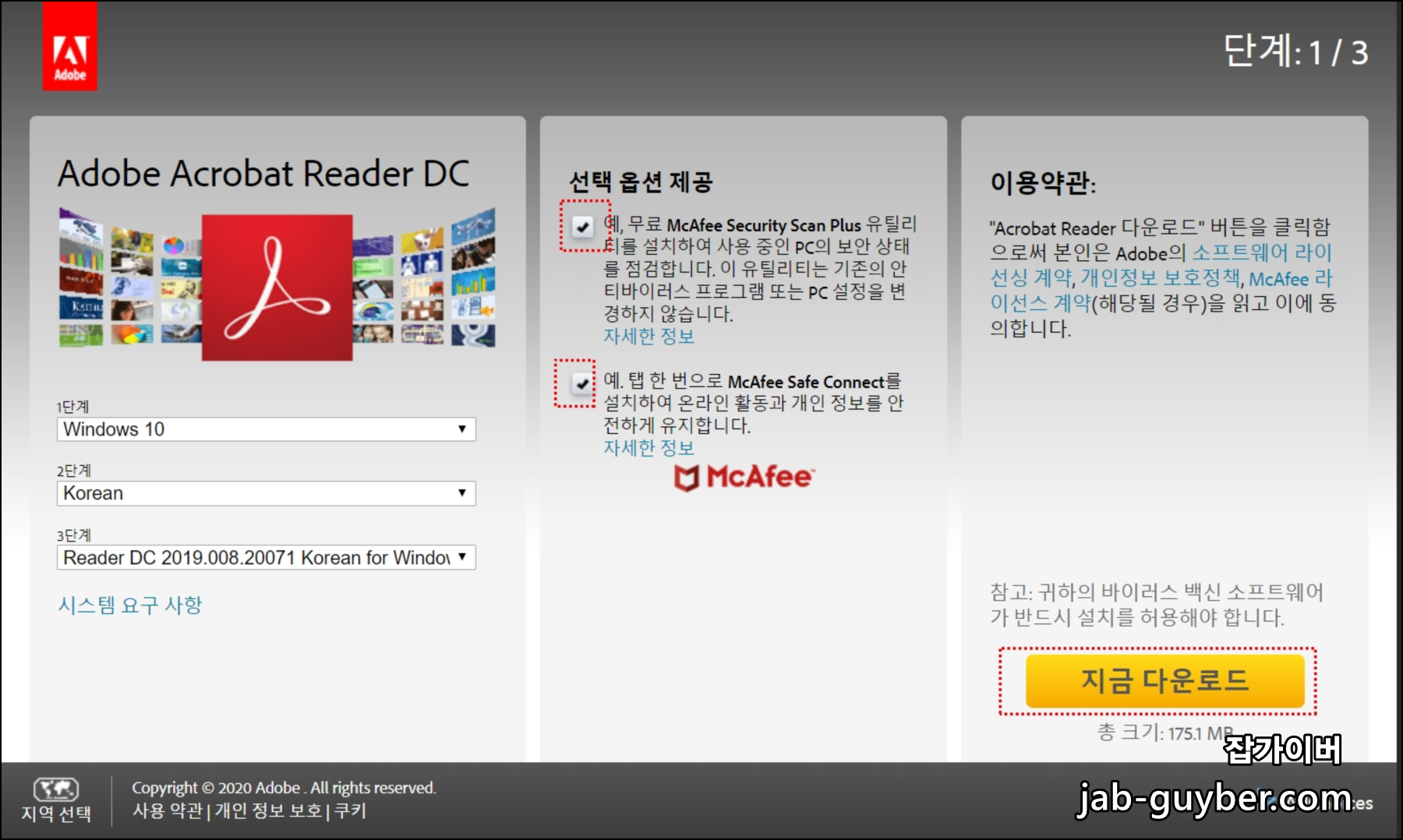 Adobe Acrobat Reader DC는 Adobe 홈페이지를 통해 무료버전과 Acrobat Pro 시험 버전 두가지중 다운로드가 가능합니다.