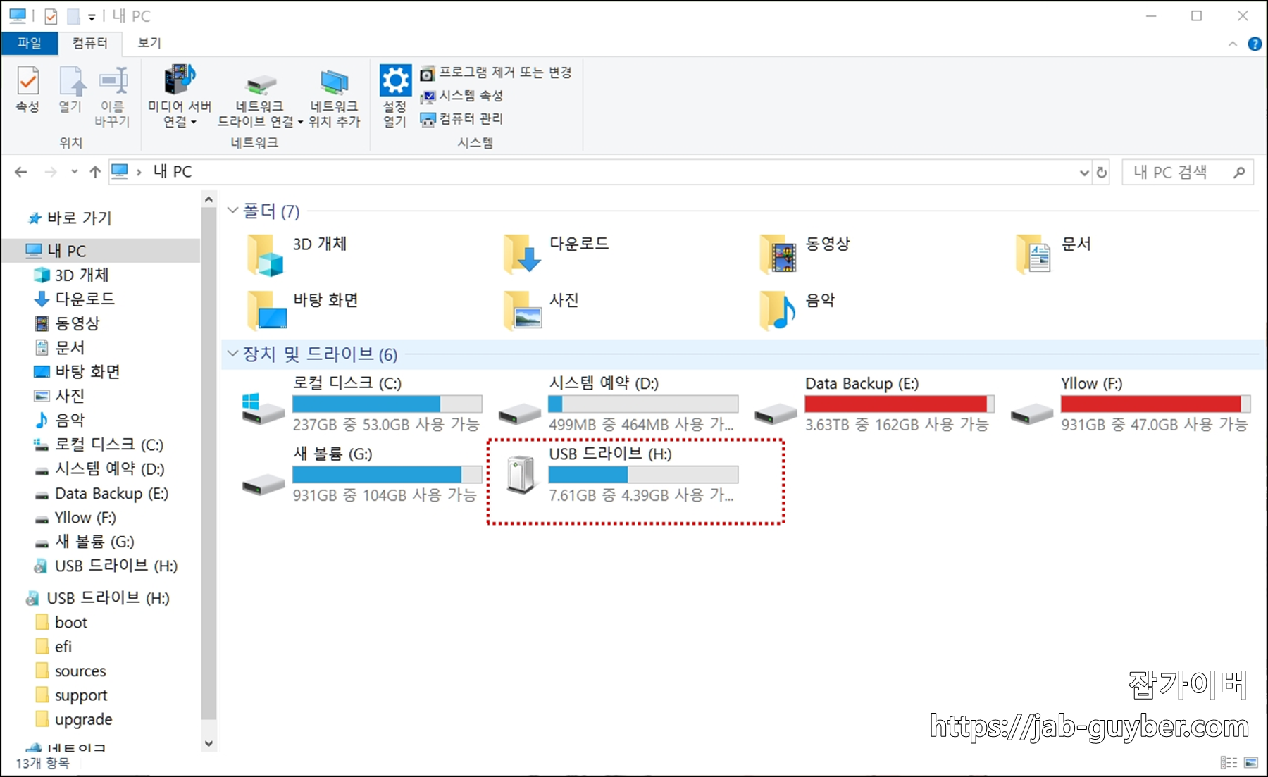- USB 드라이브가 내 PC에서 활성화됩니다.