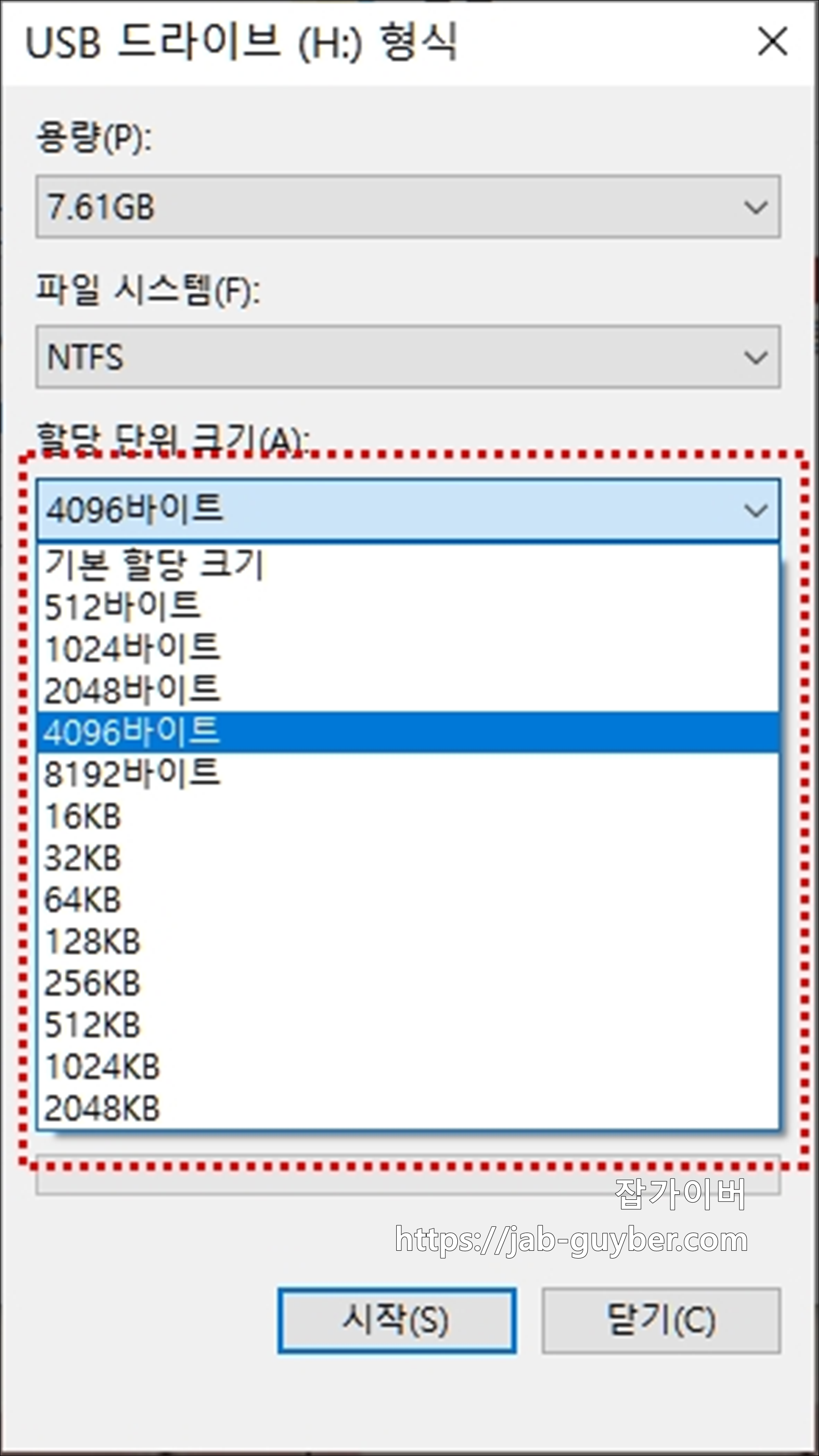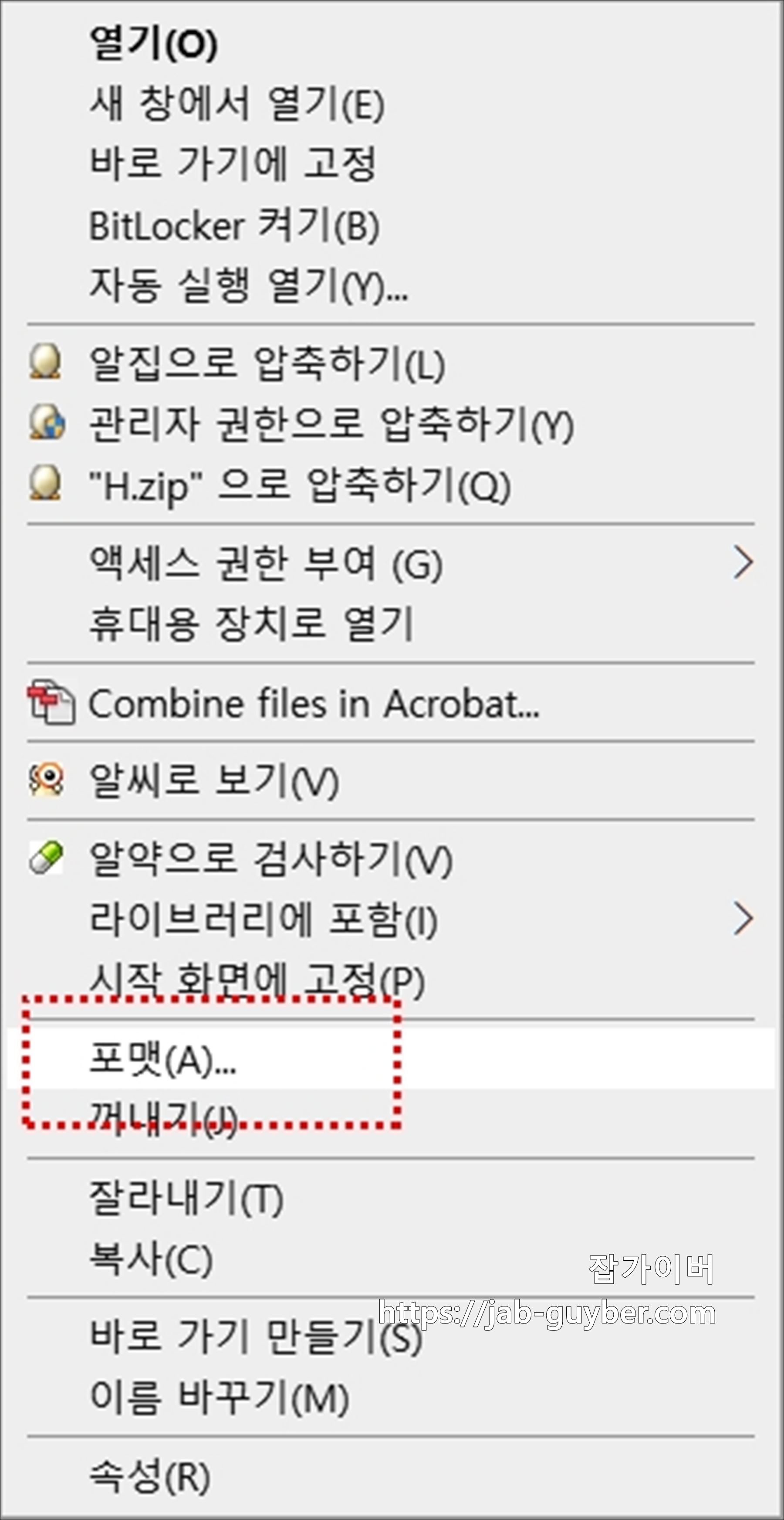 가장 기본적인 포맷은 윈도우 탐색기에서 바로 할 수 있습니다.
