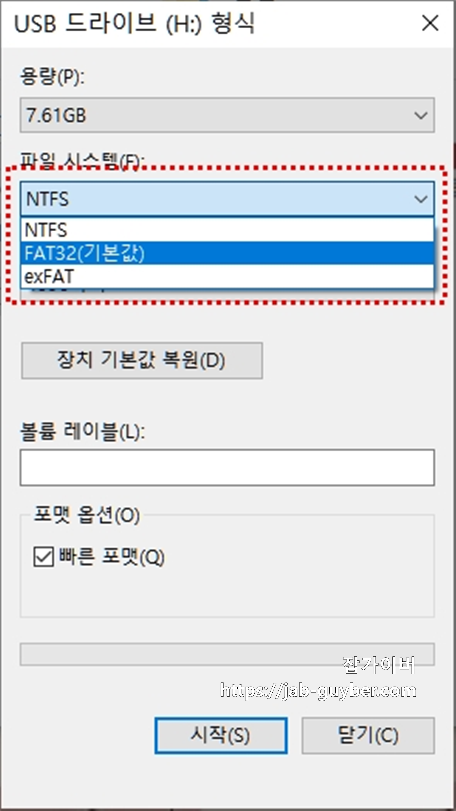 USB 외장하드 빠른 포맷 방법