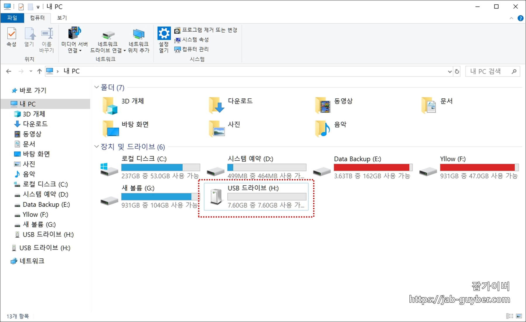 - USB 드라이브가 내 PC에서 활성화됩니다.